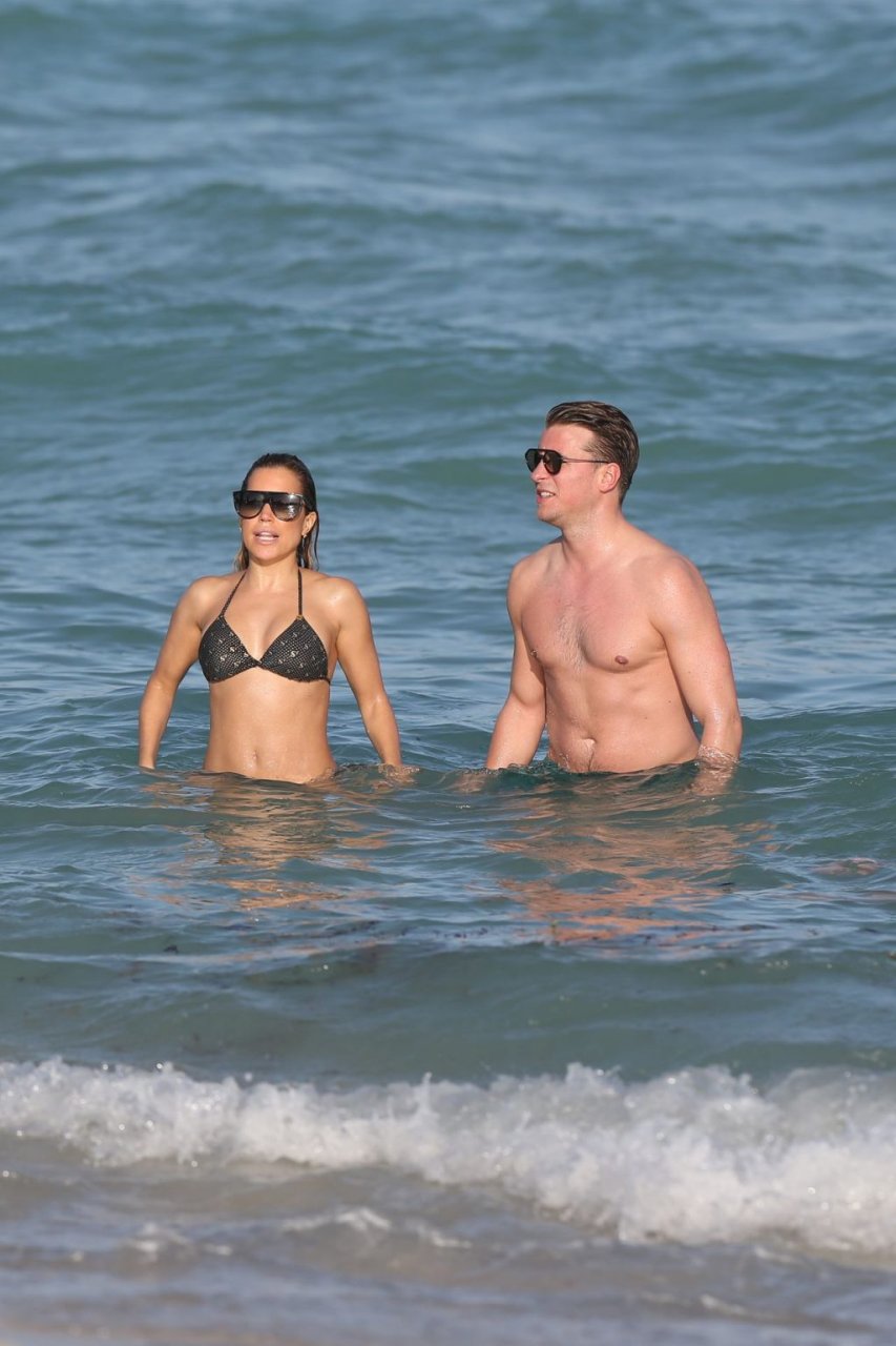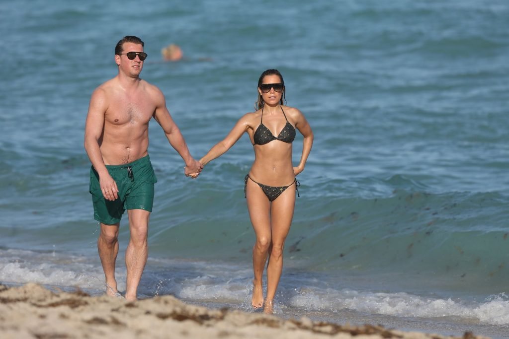 Le mannequin néerlandais et animatrice de télévision Sylvie Meis est fantastique à 40 ans alors qu’elle exhibe son corps en bikini et une énorme bague en diamant sur la plage avec son petit ami de 29 ans, Bart Willemsen, à Miami, le 29/12/2018.