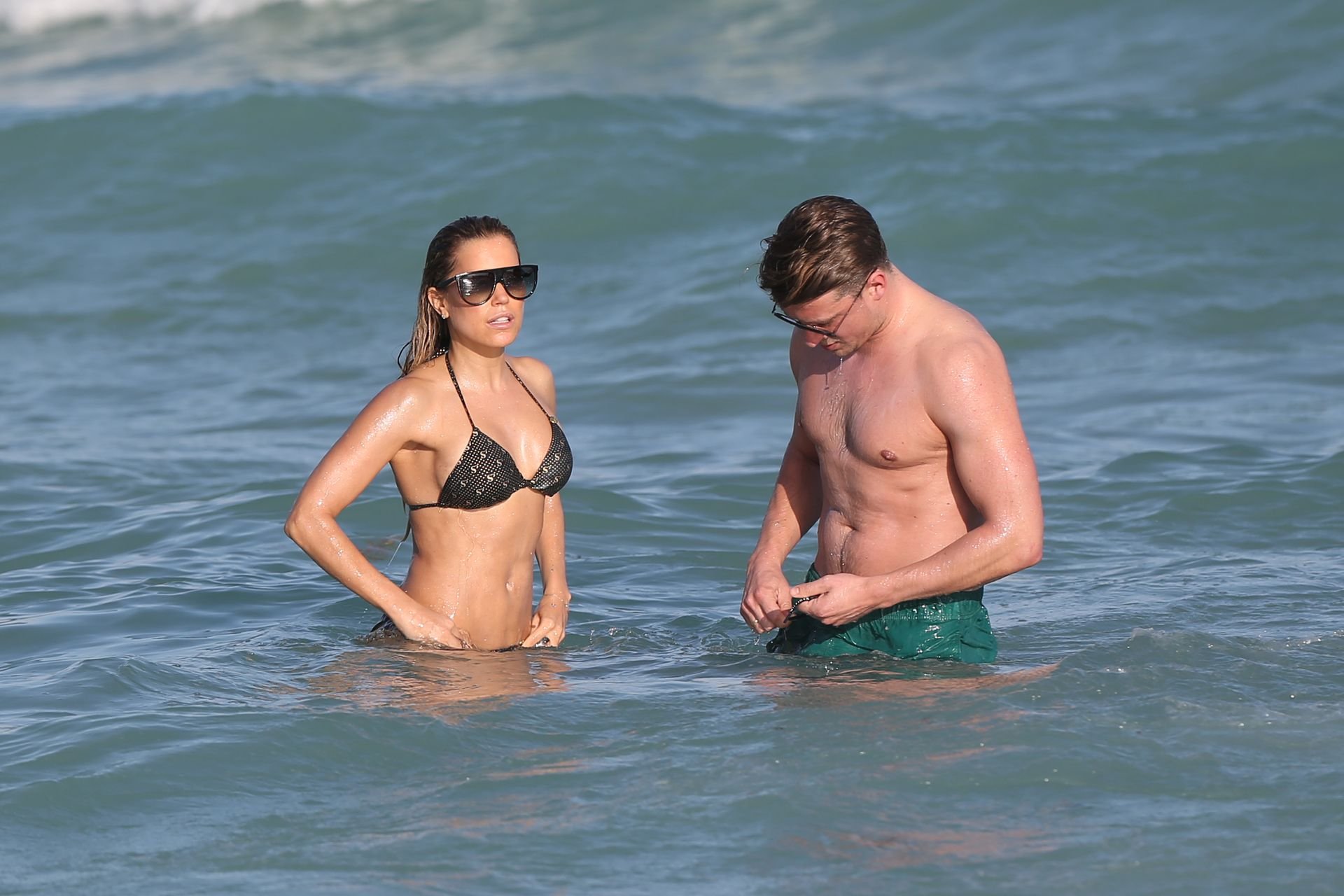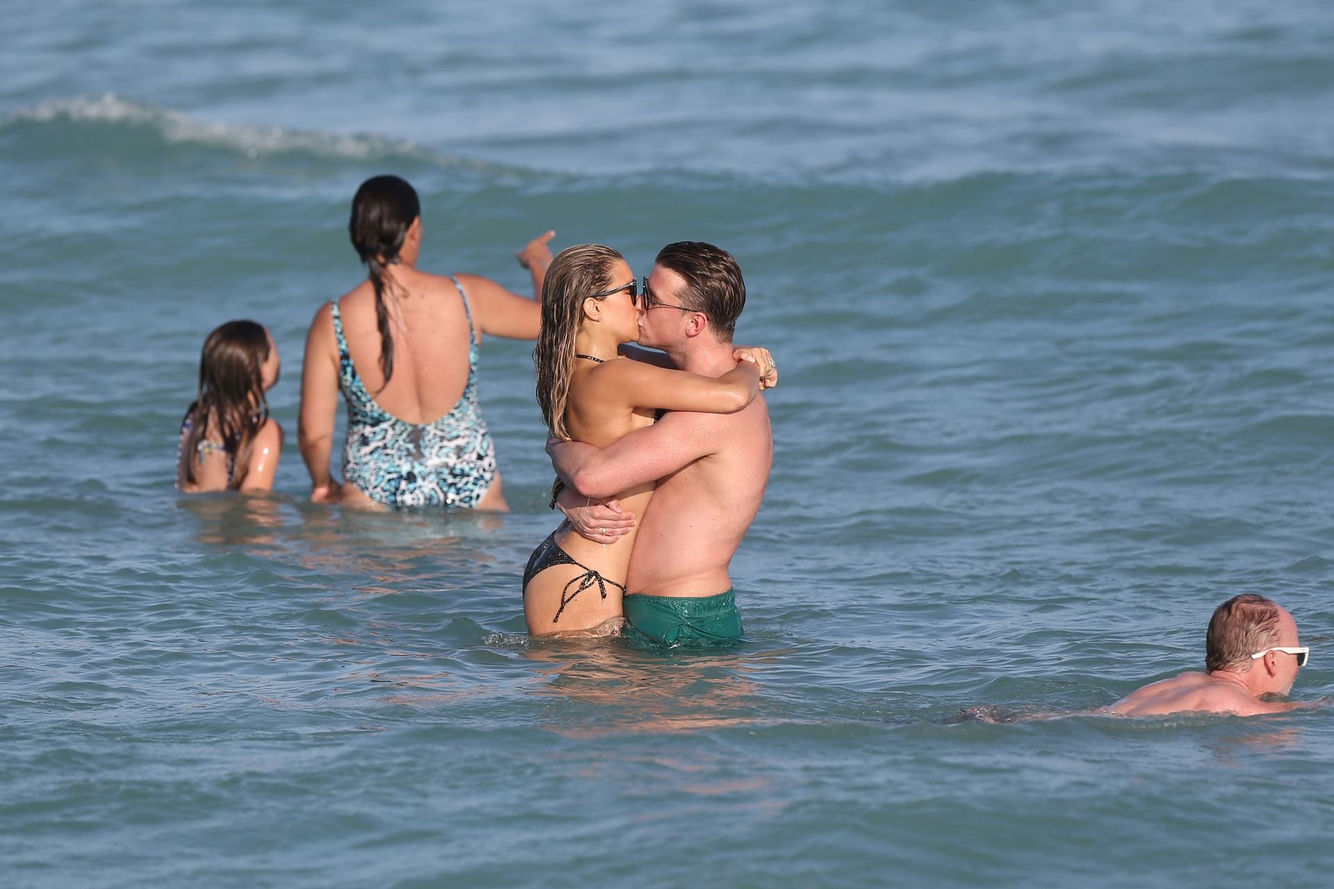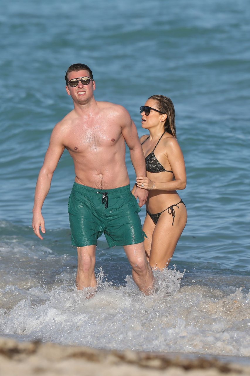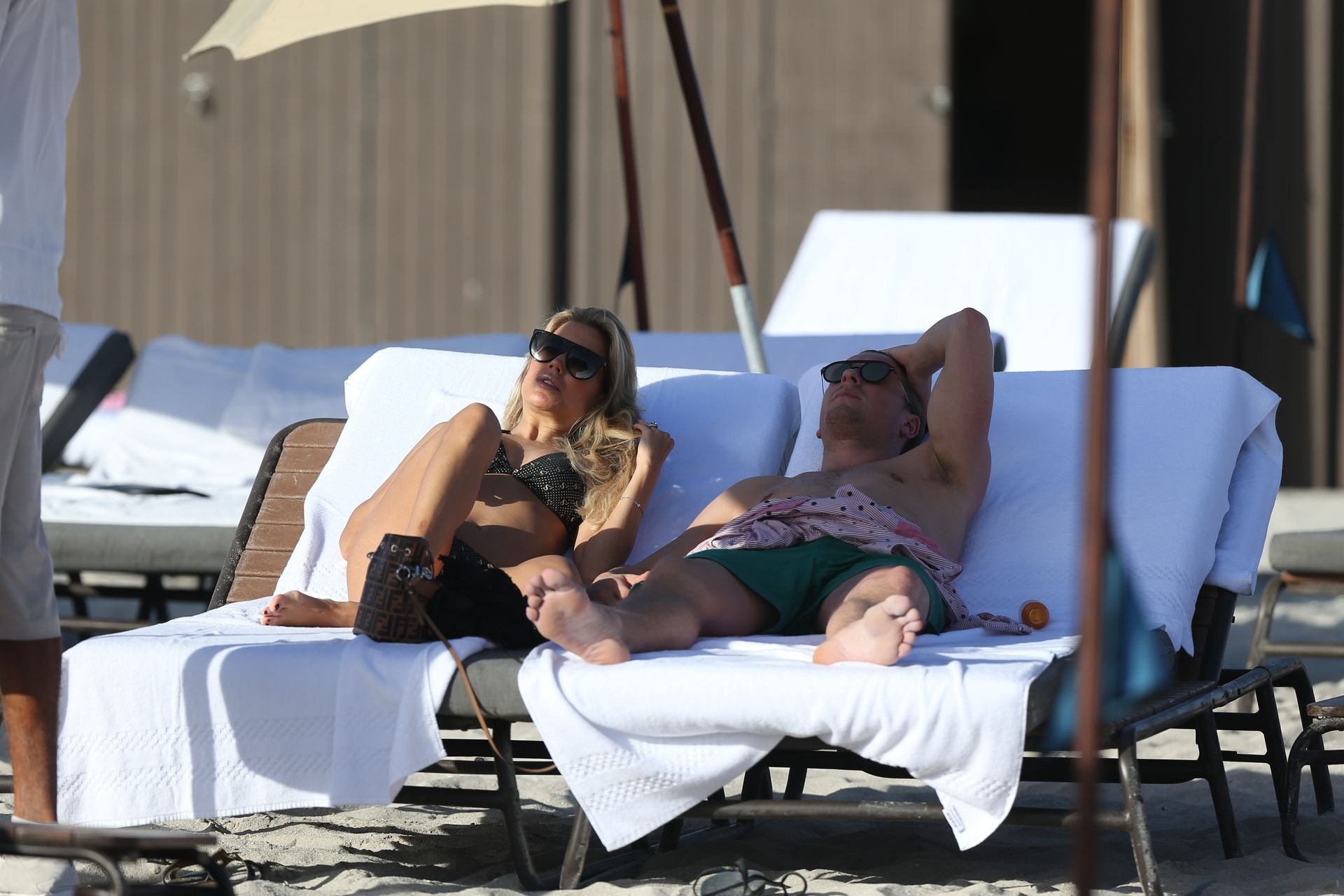 Le mannequin néerlandais et animatrice de télévision Sylvie Meis est fantastique à 40 ans alors qu’elle exhibe son corps en bikini et une énorme bague en diamant sur la plage avec son petit ami de 29 ans, Bart Willemsen, à Miami, le 29/12/2018.