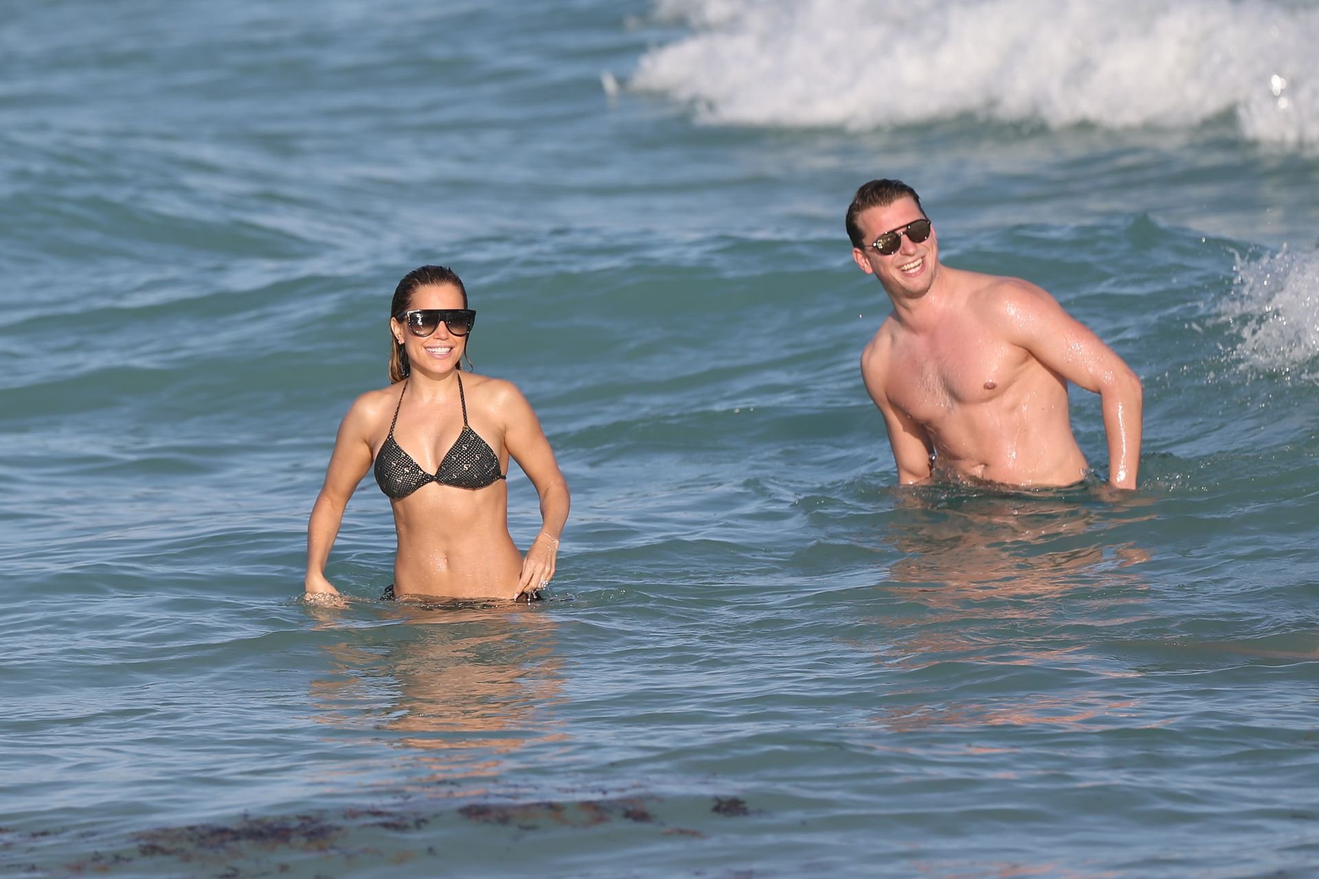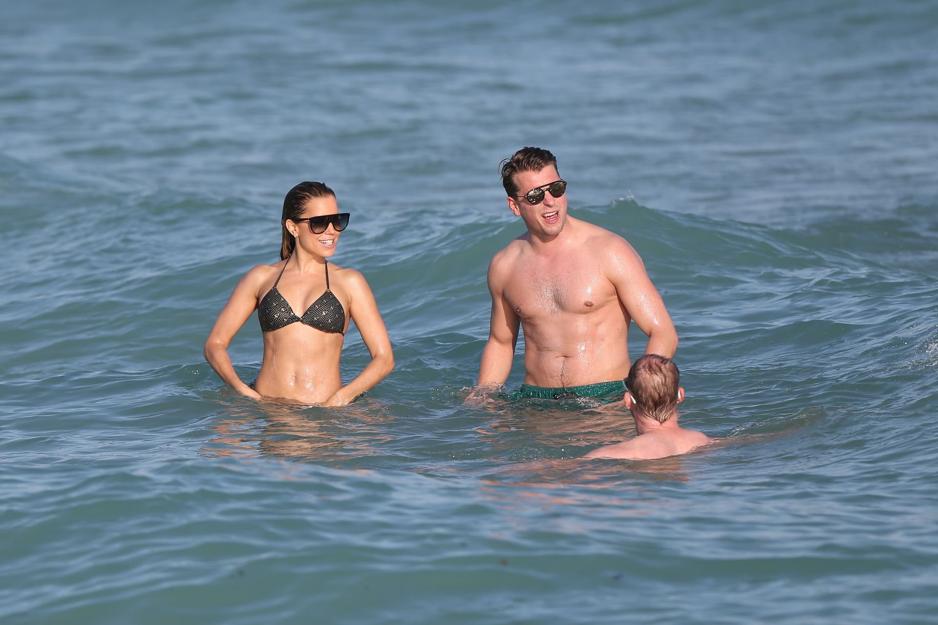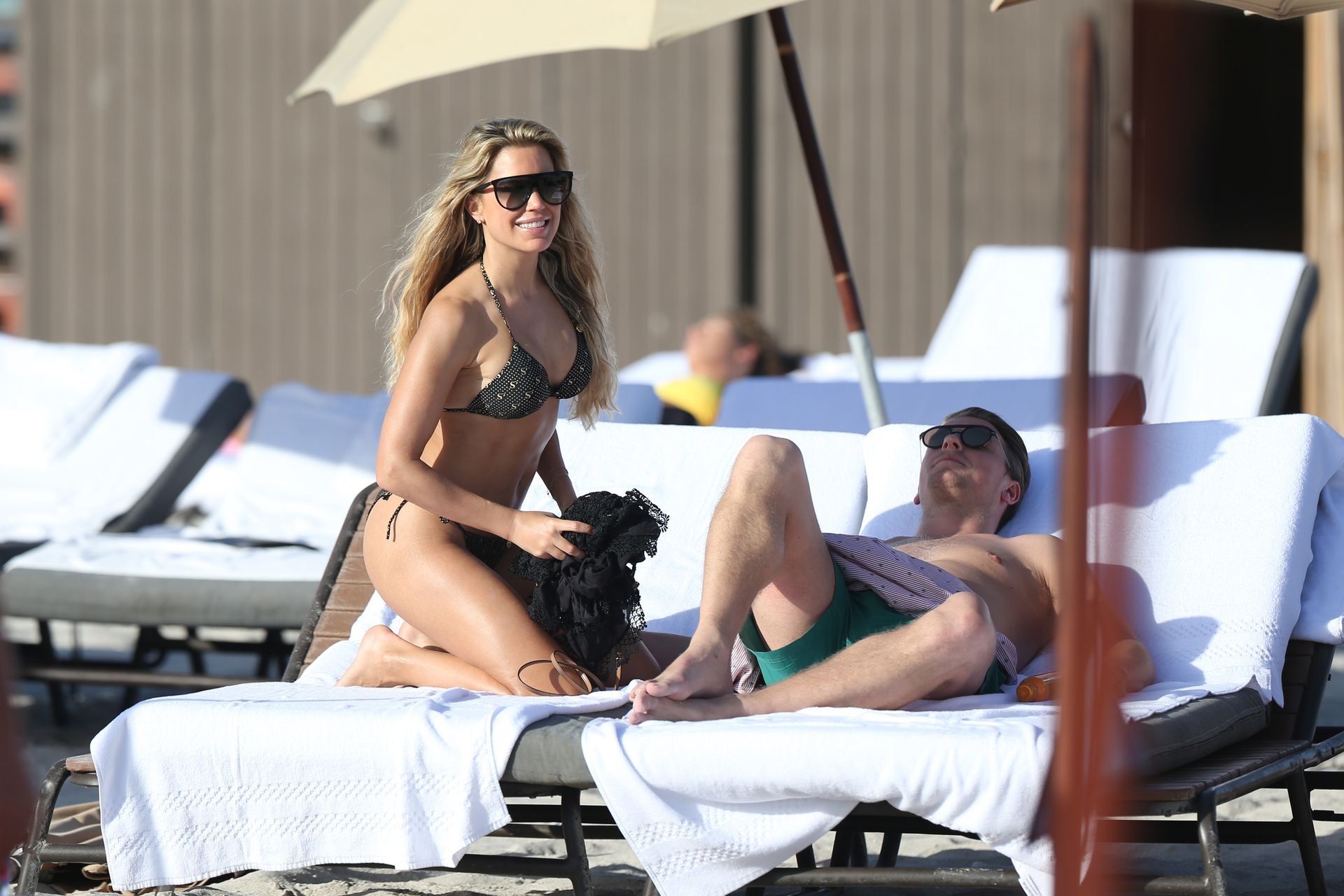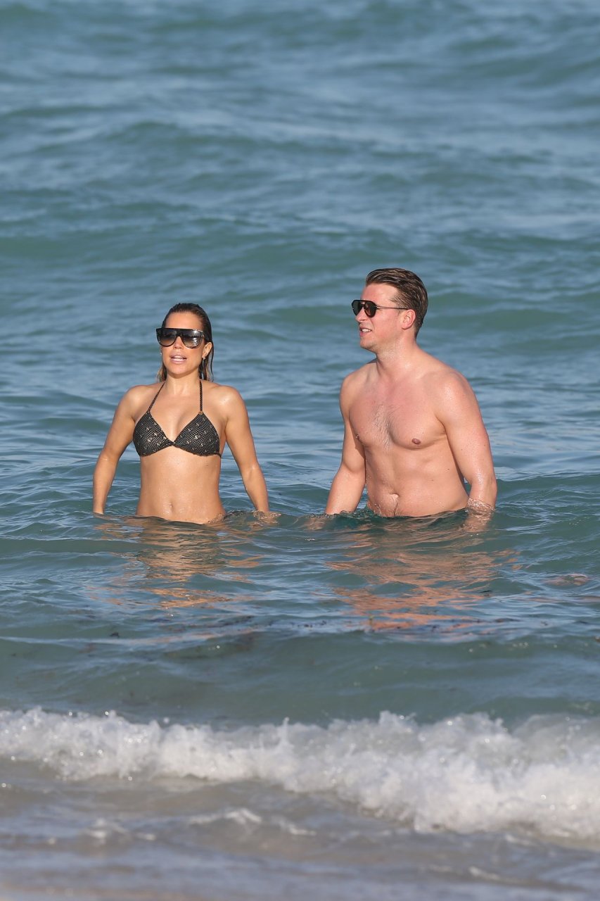 Le mannequin néerlandais et animatrice de télévision Sylvie Meis est fantastique à 40 ans alors qu’elle exhibe son corps en bikini et une énorme bague en diamant sur la plage avec son petit ami de 29 ans, Bart Willemsen, à Miami, le 29/12/2018.