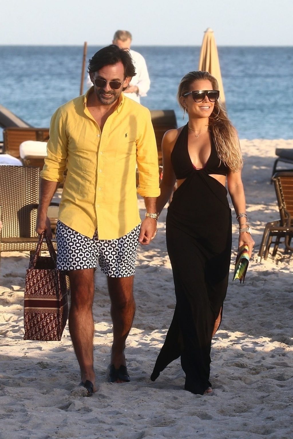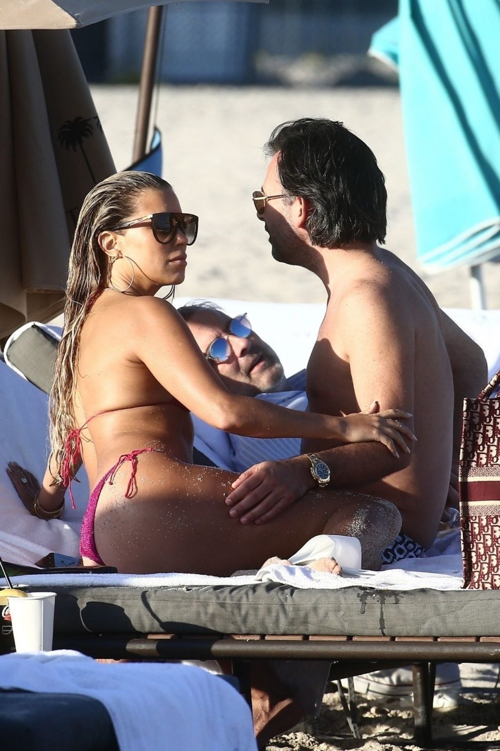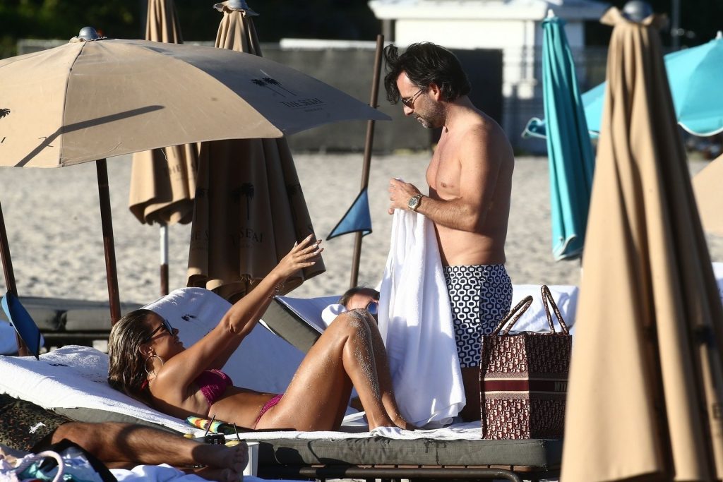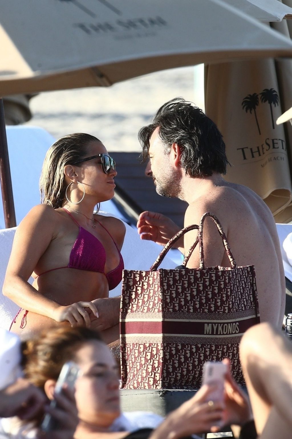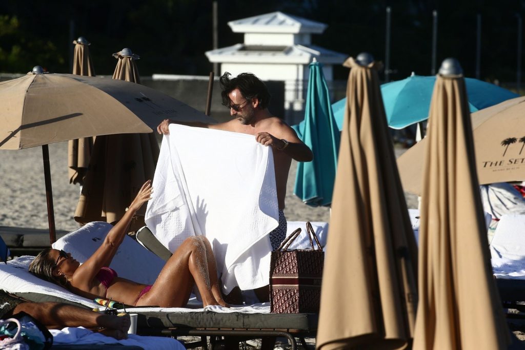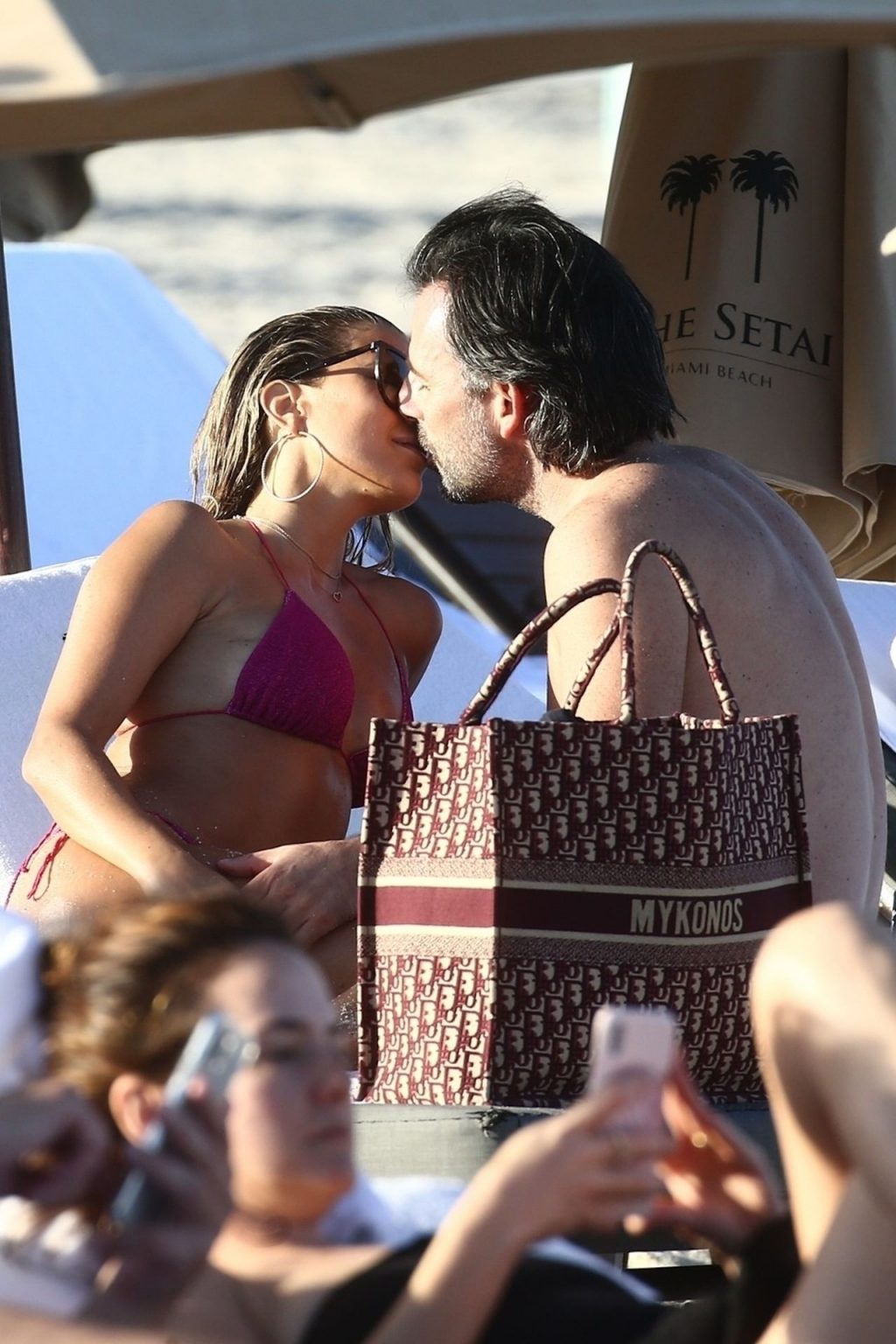 Sylvie Meis, 41 ans, a été photographiée en bikini violet sur la plage de Miami Beach, le 02/12/2019. Sylvie a fait un plongeon dans l’océan avec son fiancé et a profité du soleil sur les plages de Miami.
