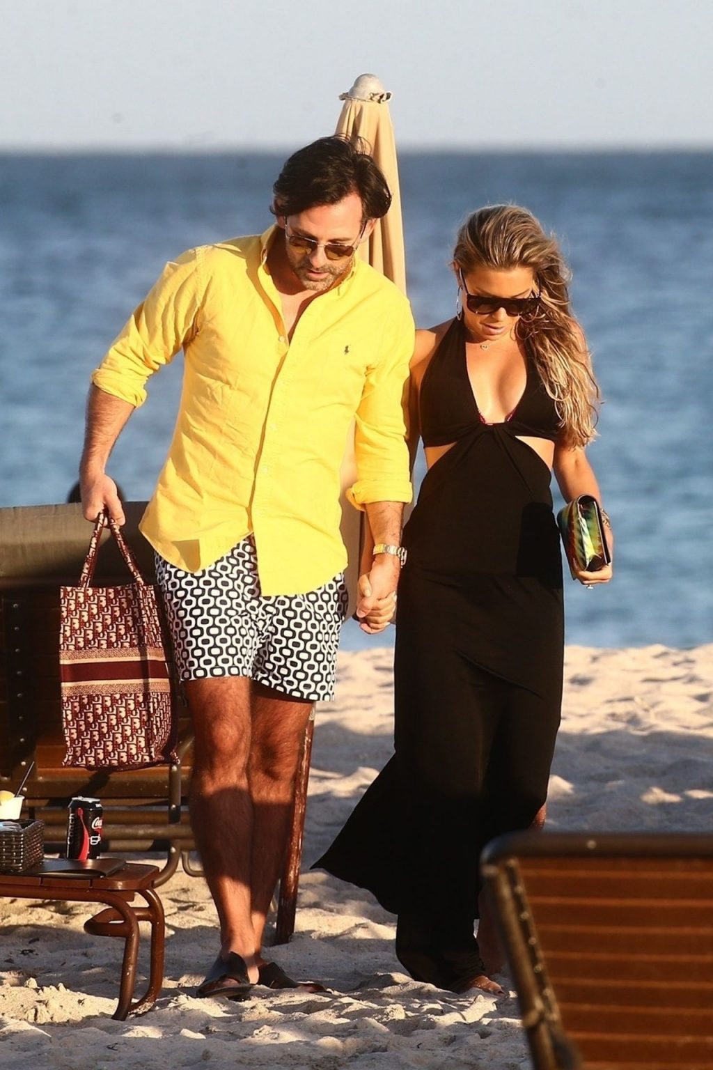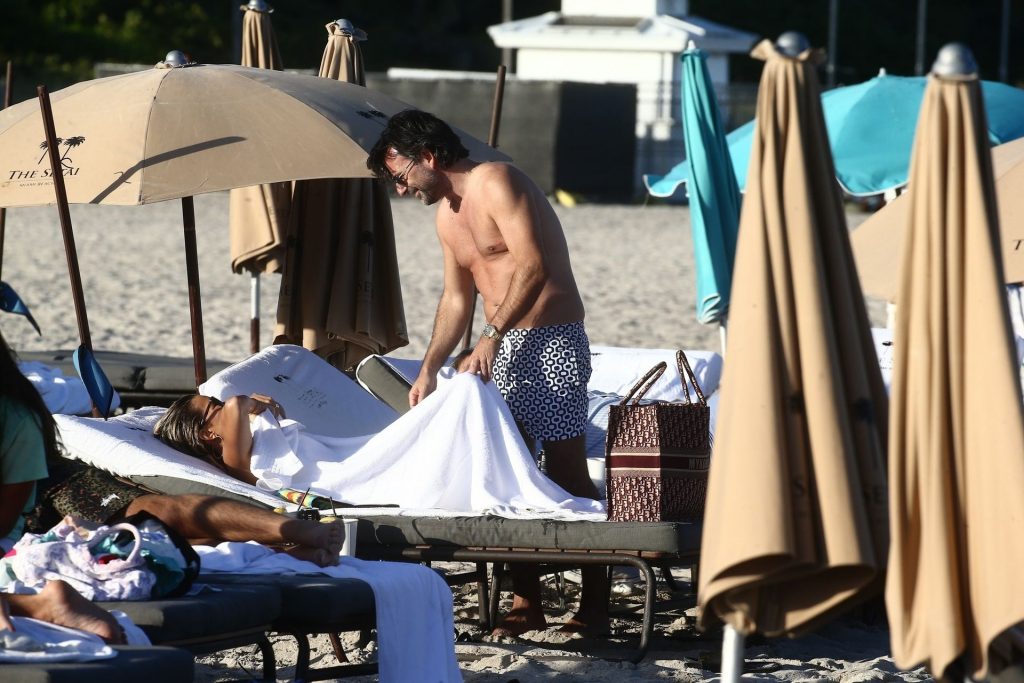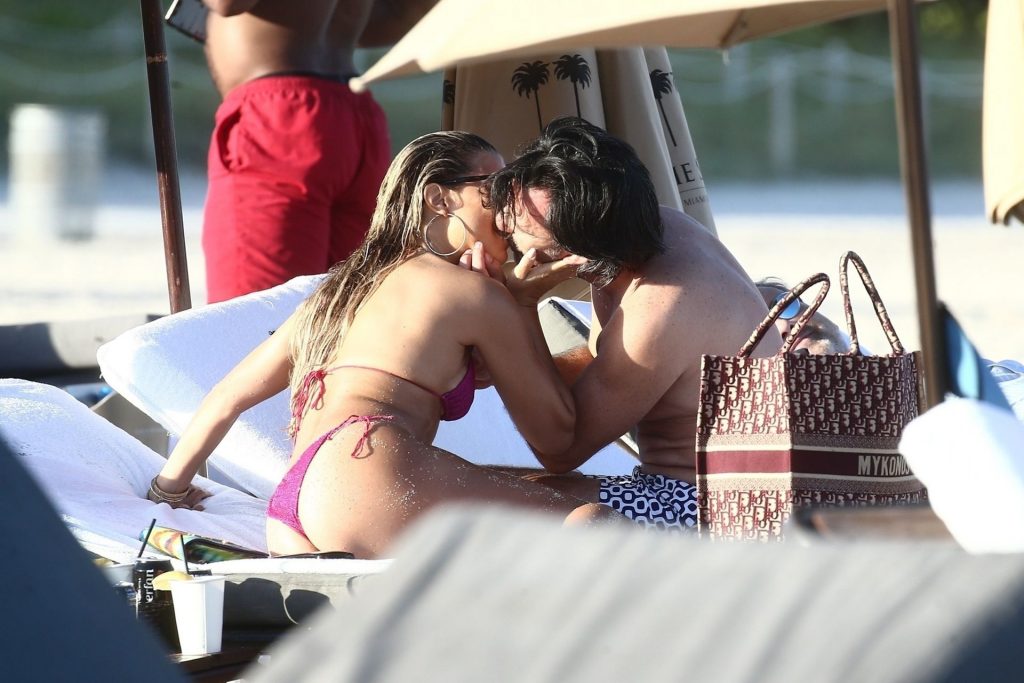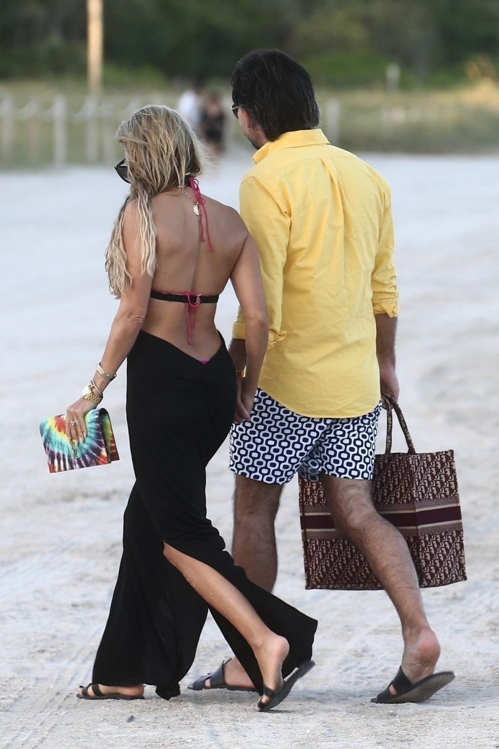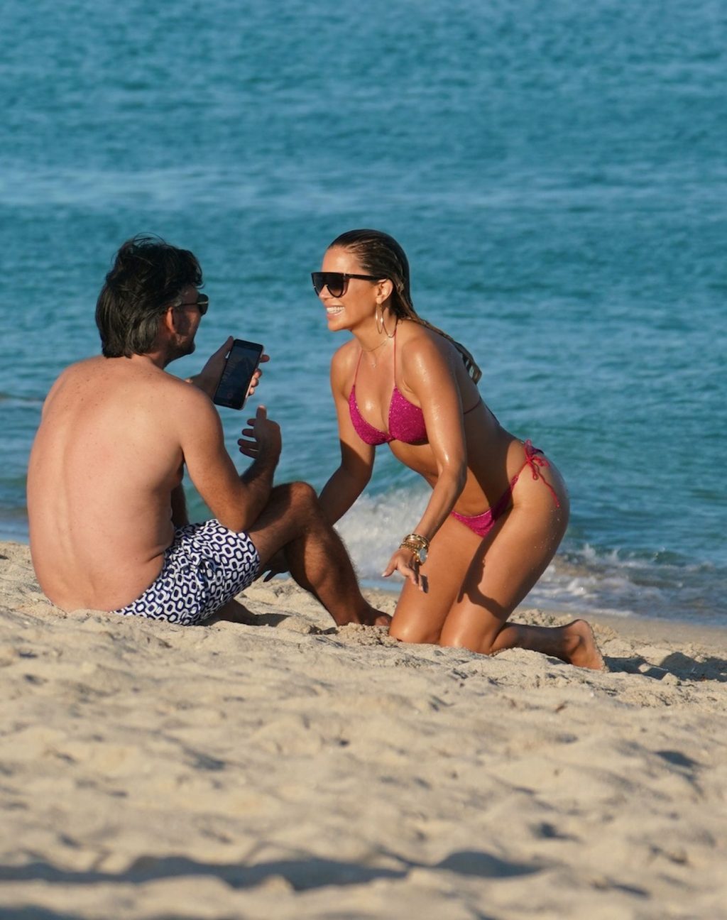 Sylvie Meis, 41 ans, a été photographiée en bikini violet sur la plage de Miami Beach, le 02/12/2019. Sylvie a fait un plongeon dans l’océan avec son fiancé et a profité du soleil sur les plages de Miami.