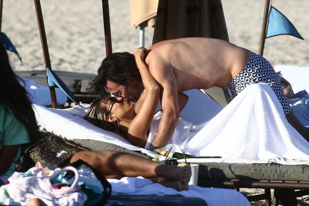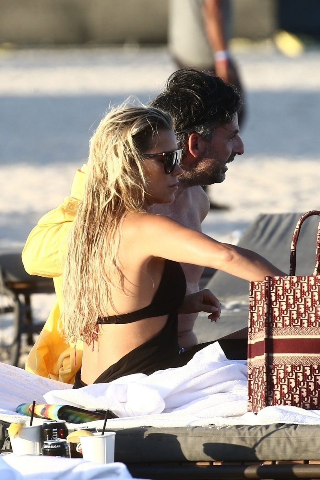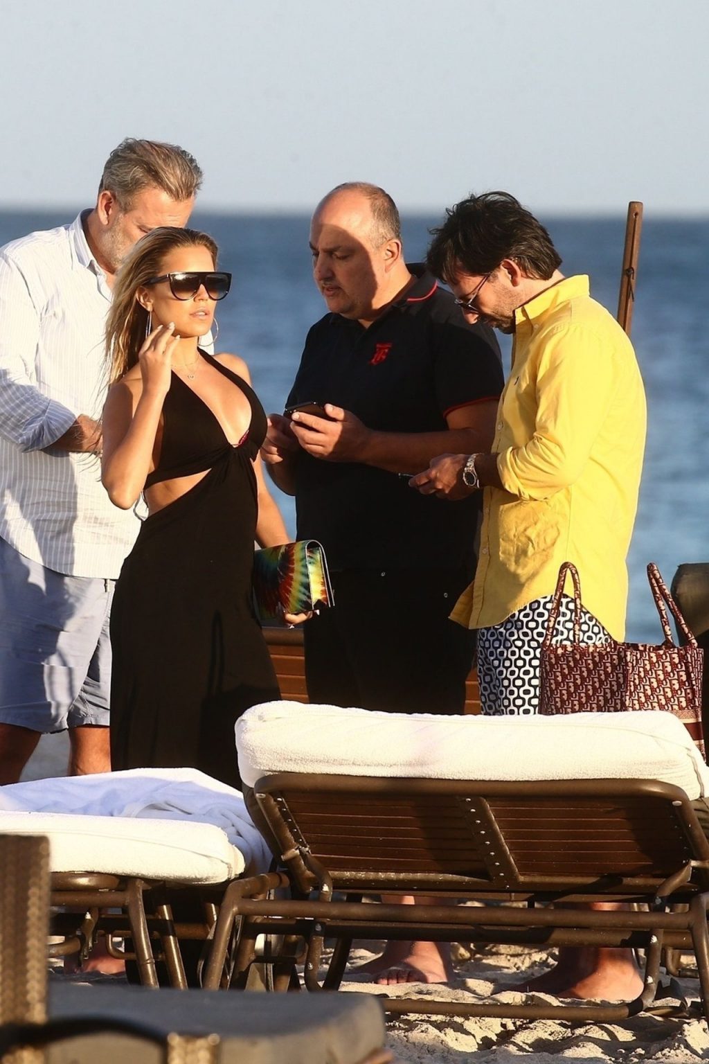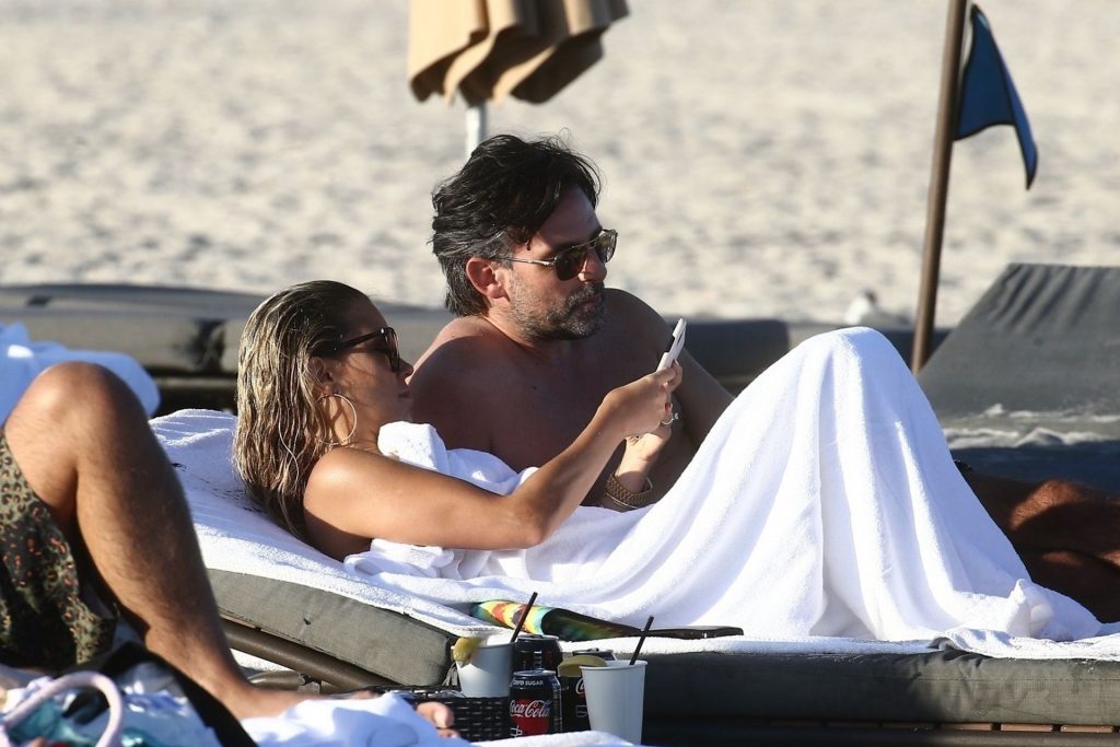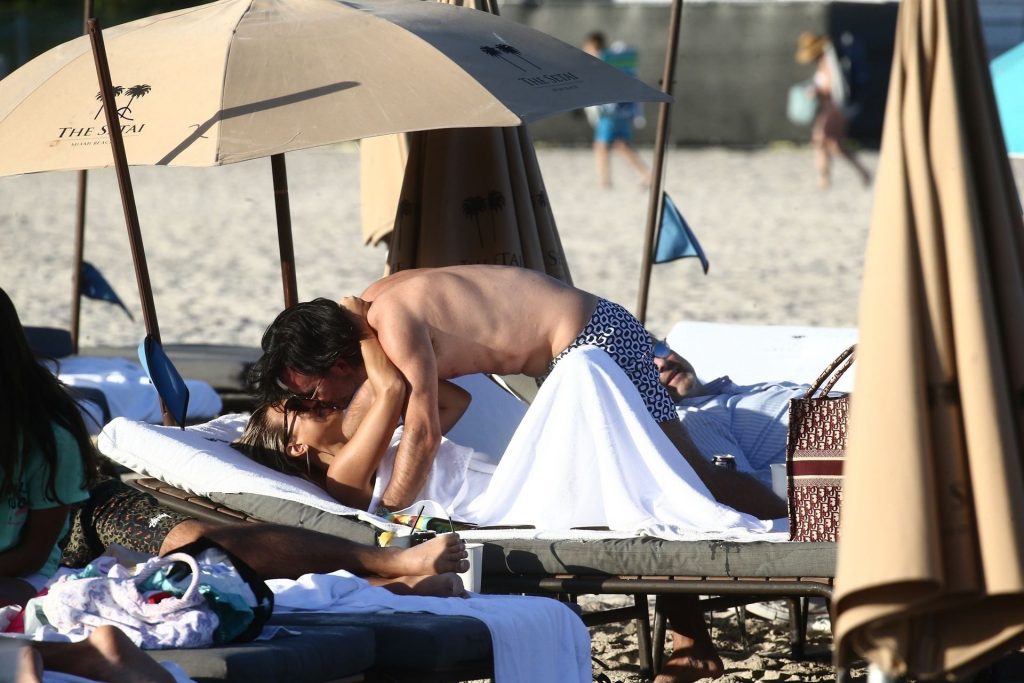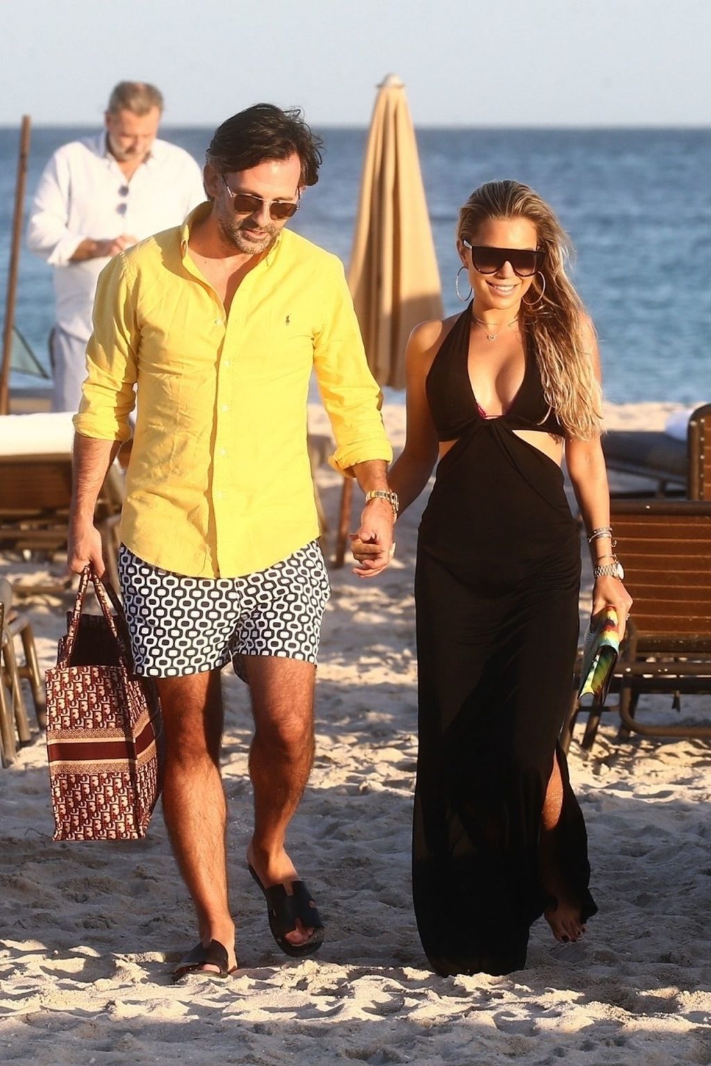 Sylvie Meis, 41 ans, a été photographiée en bikini violet sur la plage de Miami Beach, le 02/12/2019. Sylvie a fait un plongeon dans l’océan avec son fiancé et a profité du soleil sur les plages de Miami.