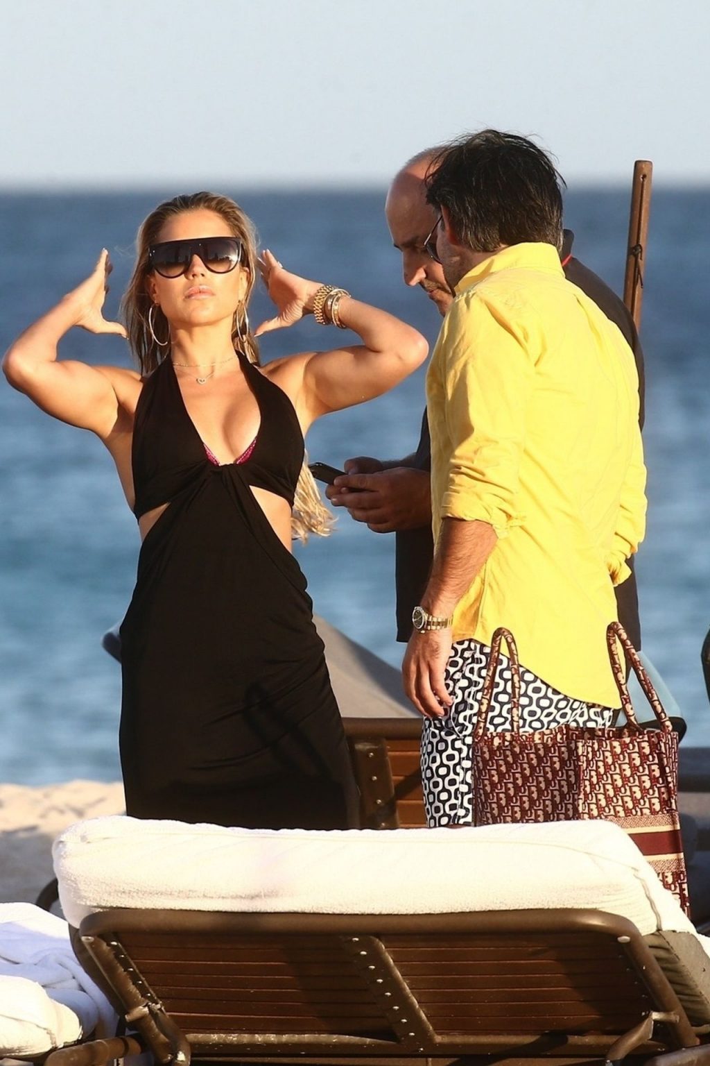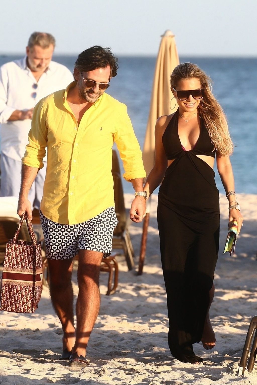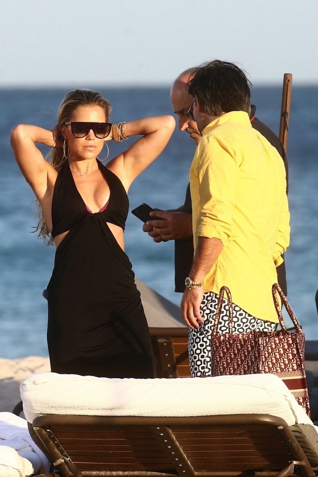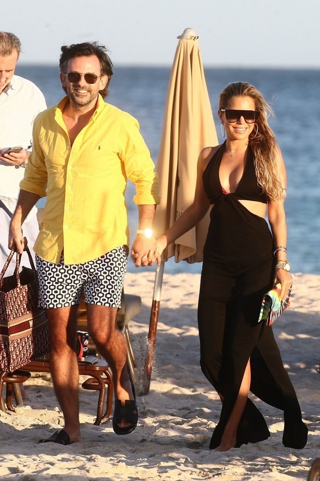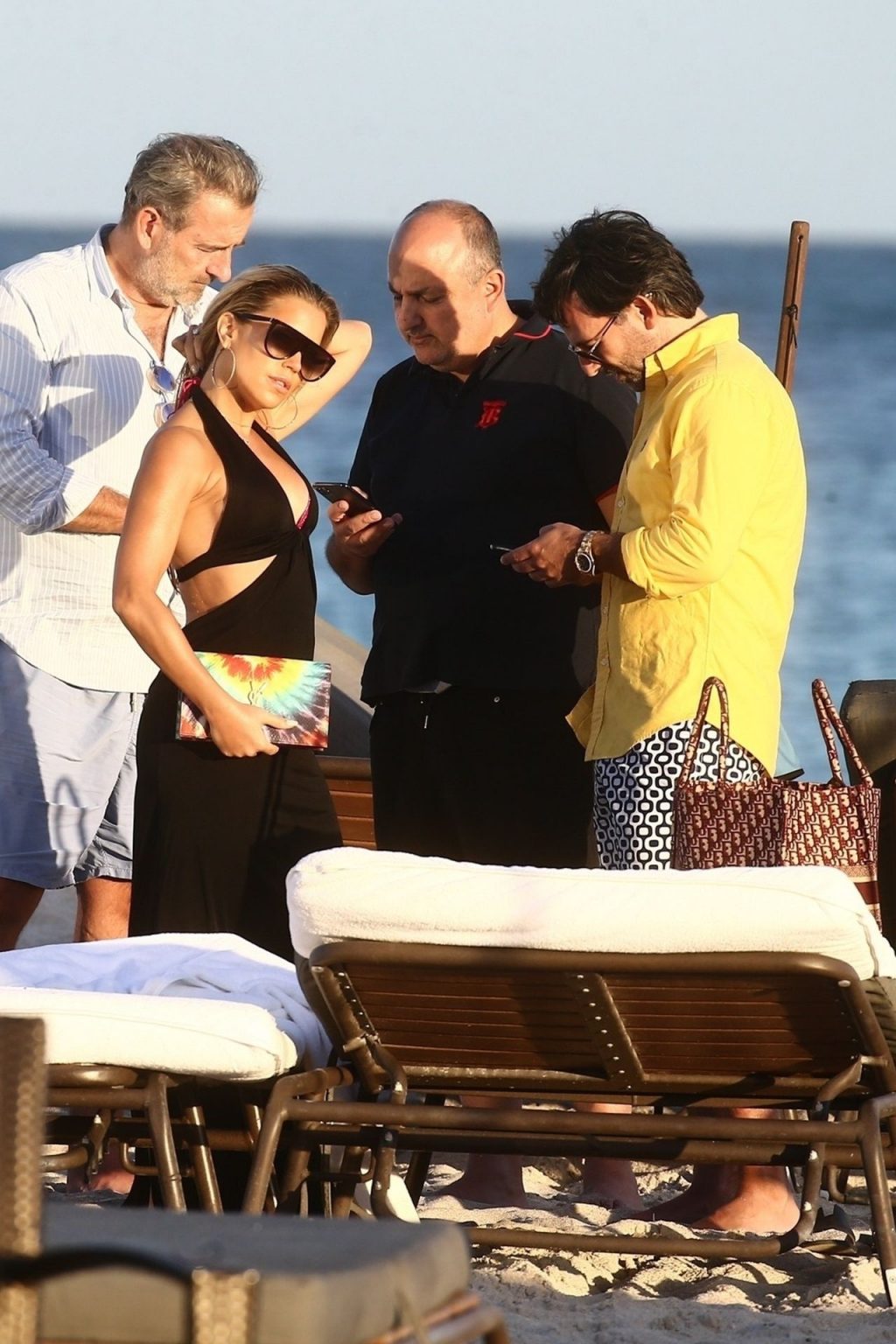 Sylvie Meis, 41 ans, a été photographiée en bikini violet sur la plage de Miami Beach, le 02/12/2019. Sylvie a fait un plongeon dans l’océan avec son fiancé et a profité du soleil sur les plages de Miami.