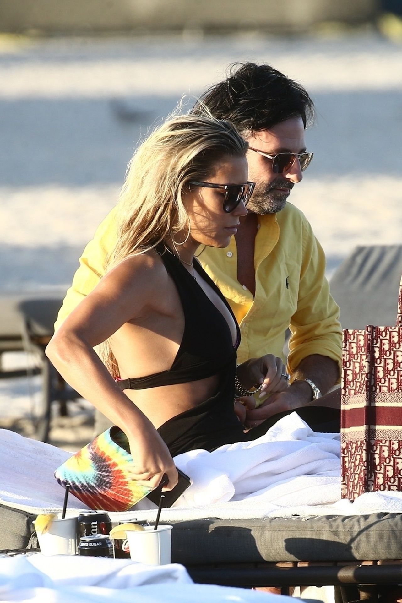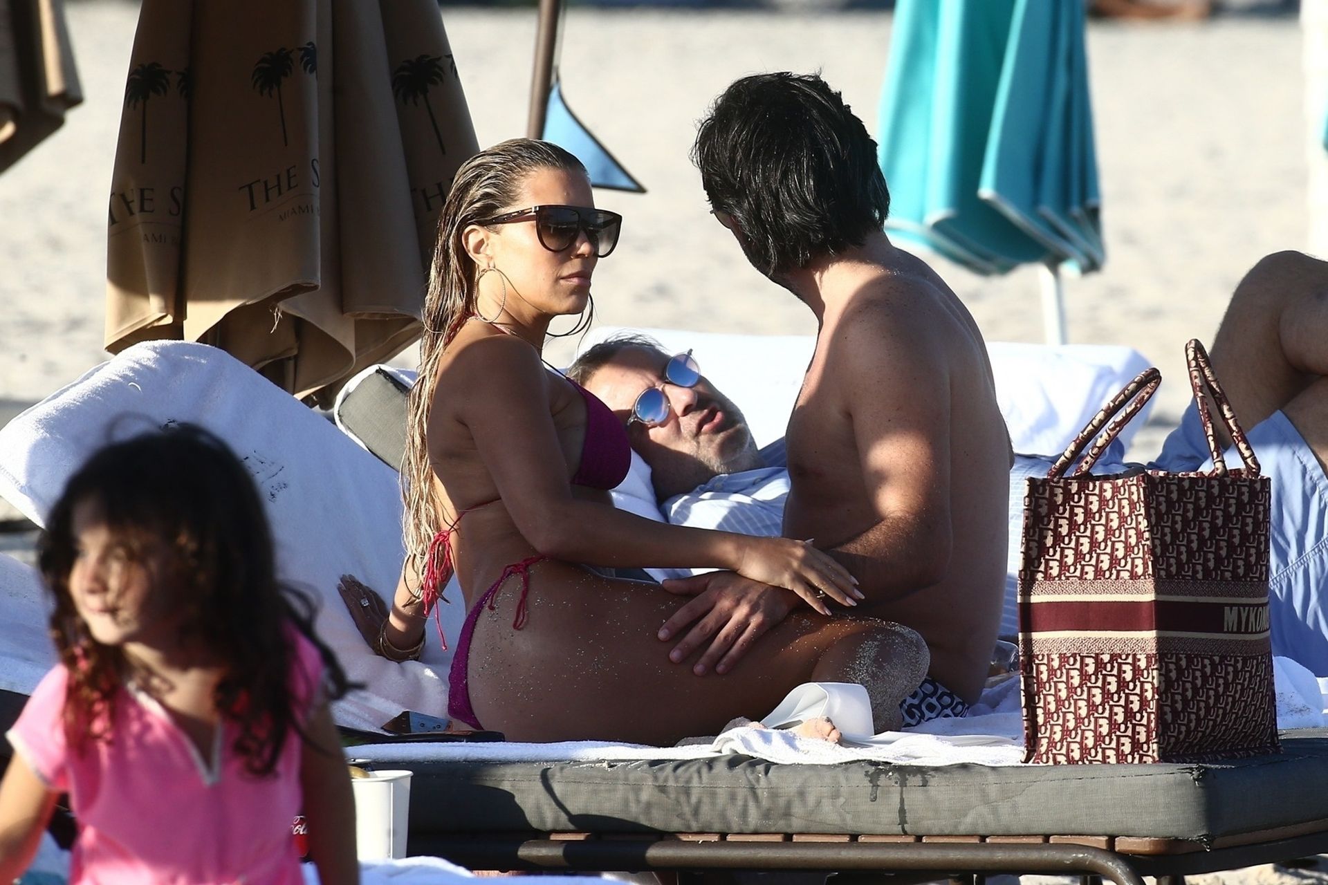 Sylvie Meis, 41 ans, a été photographiée en bikini violet sur la plage de Miami Beach, le 02/12/2019. Sylvie a fait un plongeon dans l’océan avec son fiancé et a profité du soleil sur les plages de Miami.
