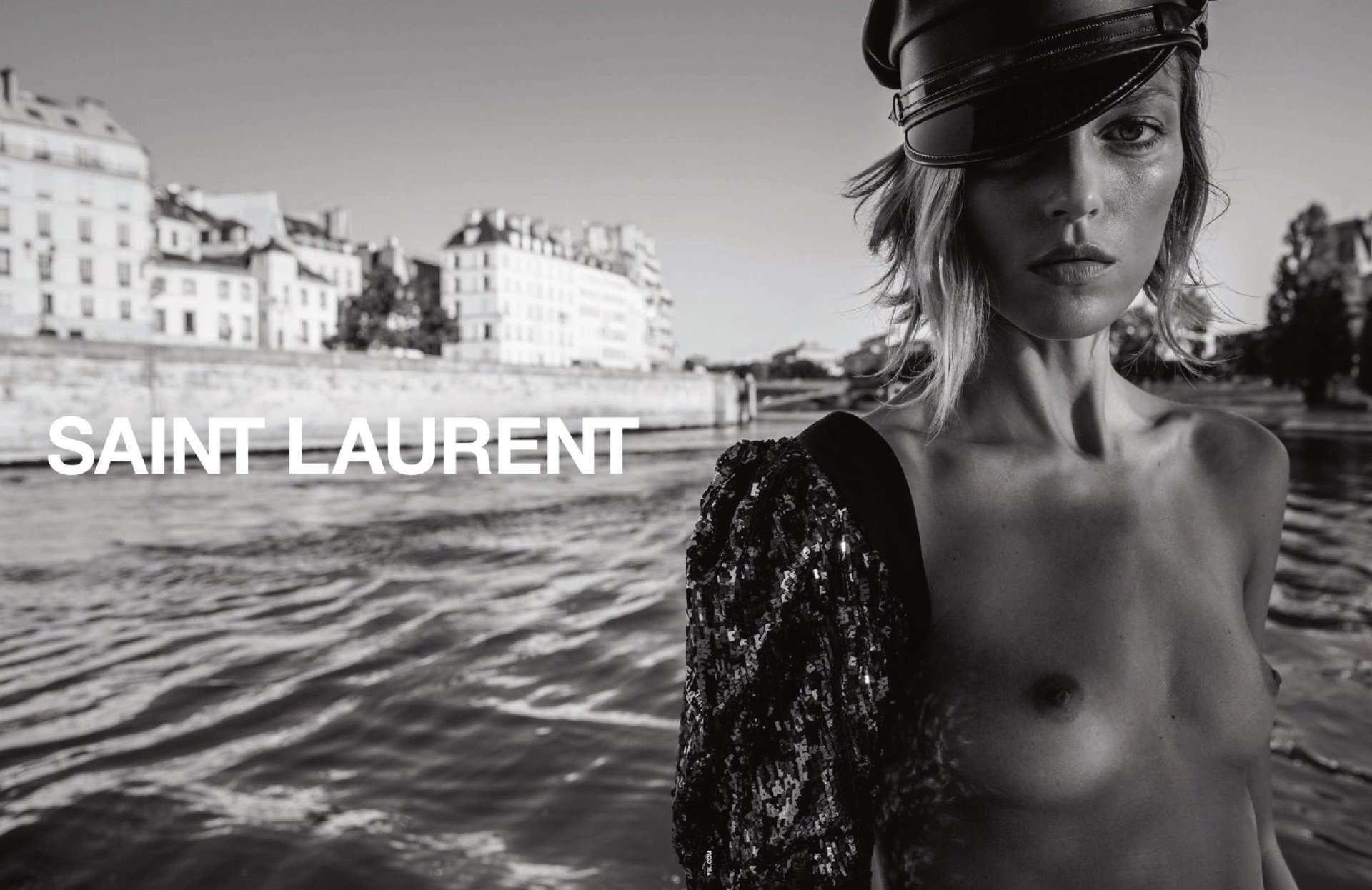Anja Rubik sans soutien-gorge présente la nouvelle collection Saint Laurent Printemps/Été 2017 lors de la Fashion Week de Paris, 27/09/2016. Anja Rubik est un mannequin polonais. Âge 33 ans (12 juin 1983). Taille 179 cm.