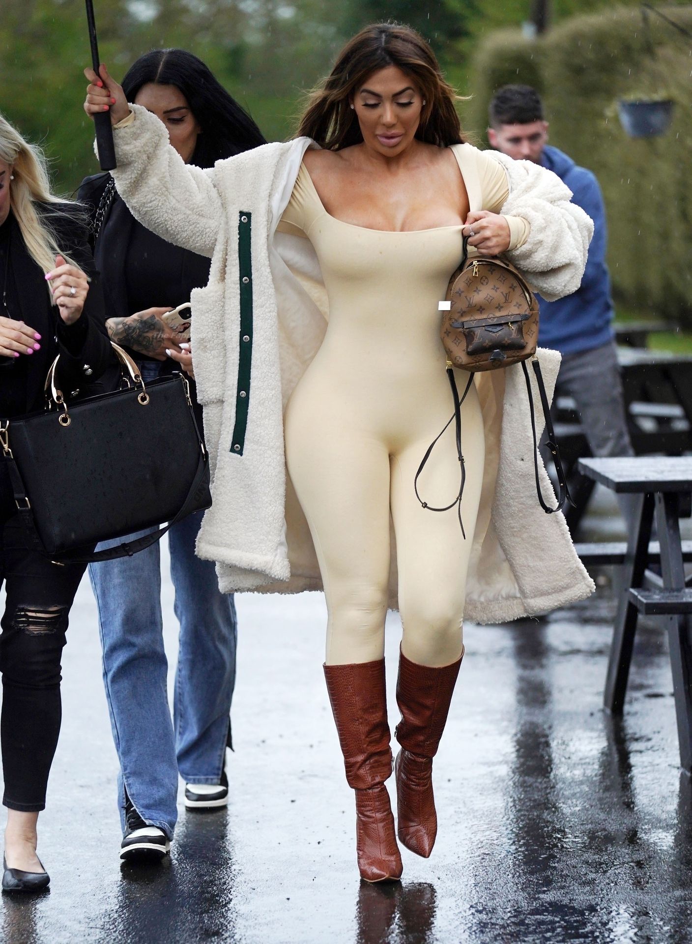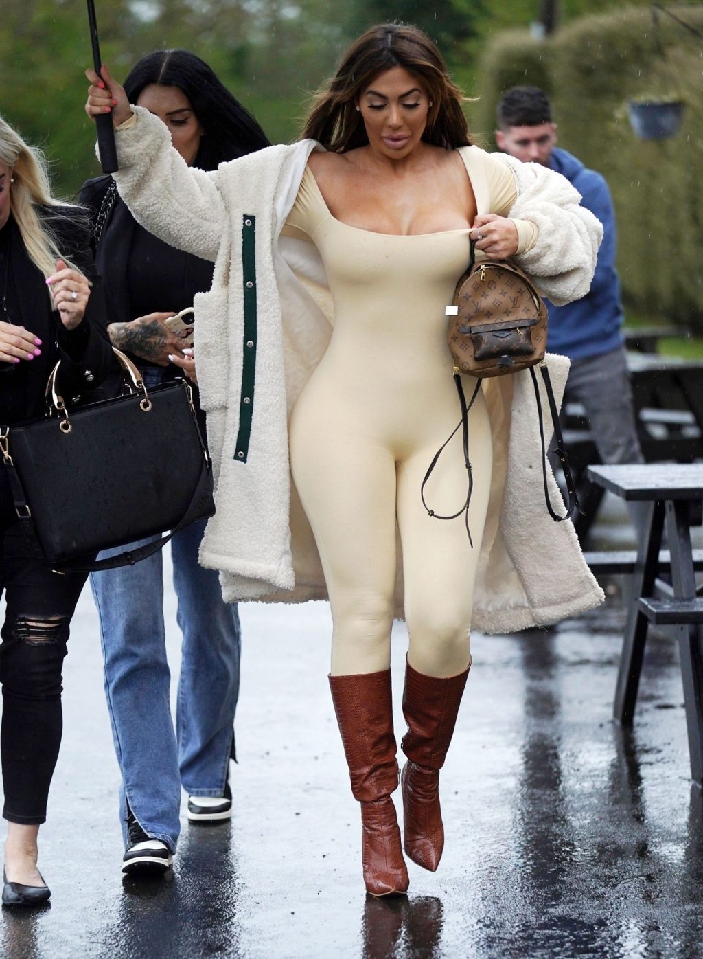 Chloe Ferry déborde de sa combinaison corporelle nude lors d’une sortie au Tomahawk Steakhouse dans le quartier huppé de Ponteland, Newcastle, 05/11/2021.