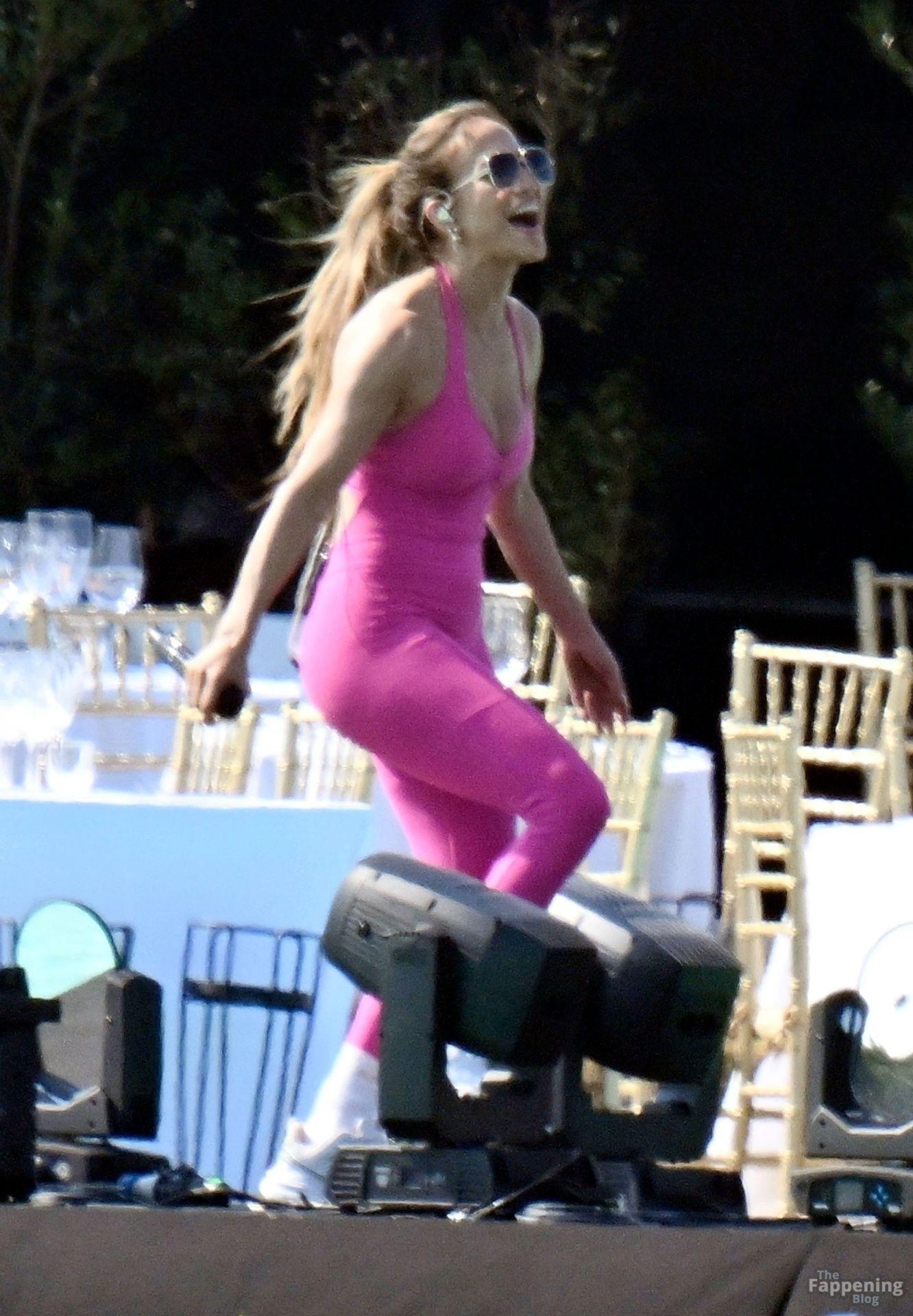 Jennifer a été aperçue en répétition à Cala di Volpe, portant une combinaison rose vif à col halter, de grandes lunettes de soleil, des baskets et des chaussettes tout en testant le micro pour son grand spectacle. Son équipe de danse, comprenant le danseur Ivan Marić et le chorégraphe Kiel Tutin, la soutenait.