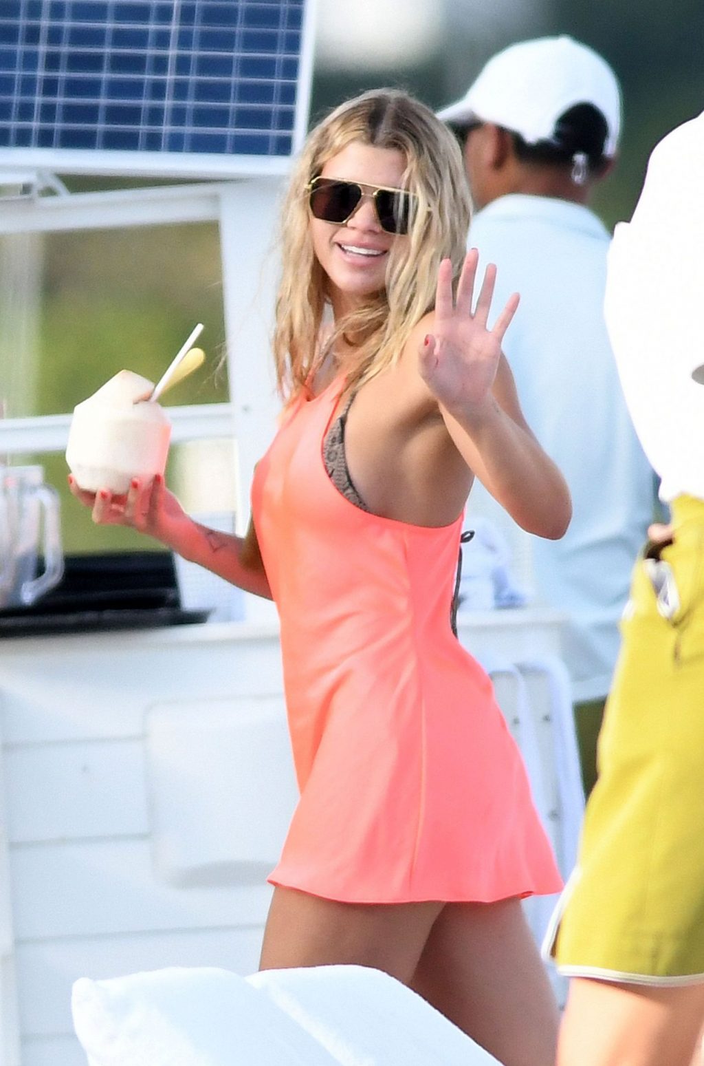 Sofia Richie a été vue portant une robe néon brillante par-dessus son bikini alors qu’elle profite du soleil sur une plage de Miami avec Scott Disick, le 26/11/2019. La jeune star a passé le week-end à se reposer avec des amis. Les paparazzis ont pris plusieurs photos réussies de la blonde.