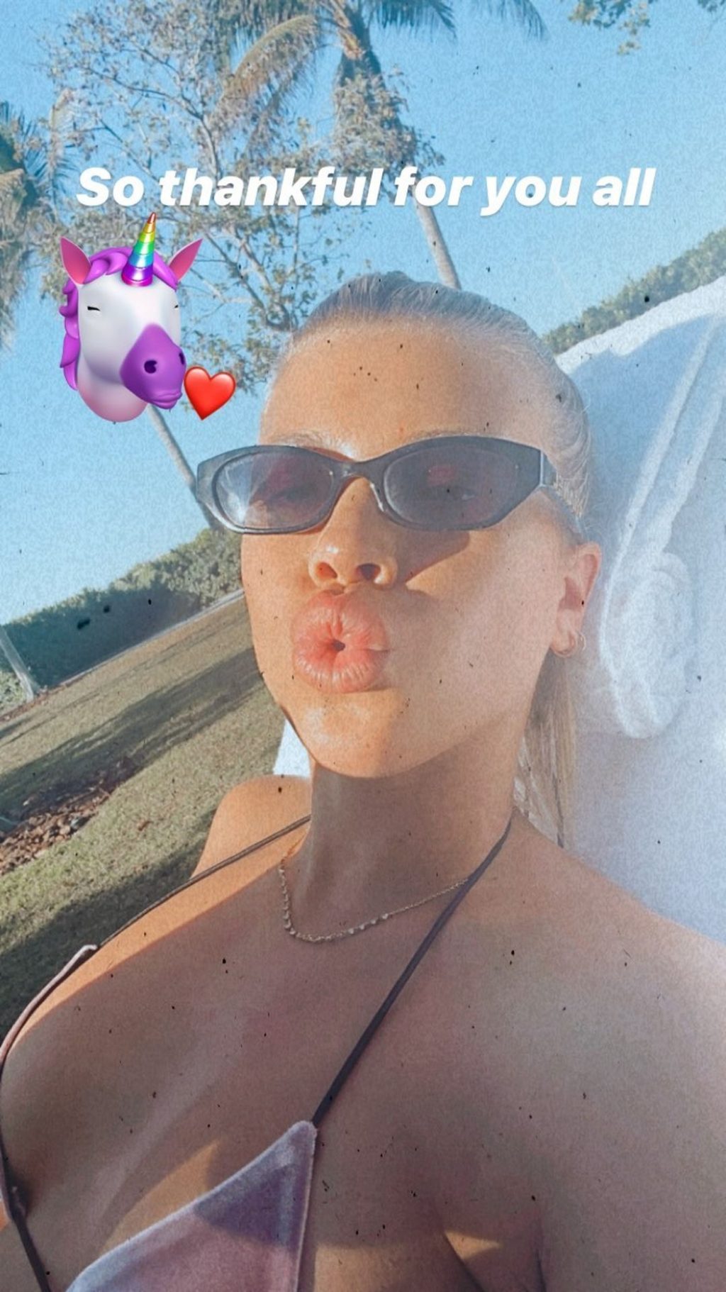Le mannequin Sofia Richie et Scott Disick sont vus sur la plage à Miami lors de Thanksgiving, le 28/11/2019. En plus de son petit bikini, Sofia portait des lunettes de soleil Chanel.