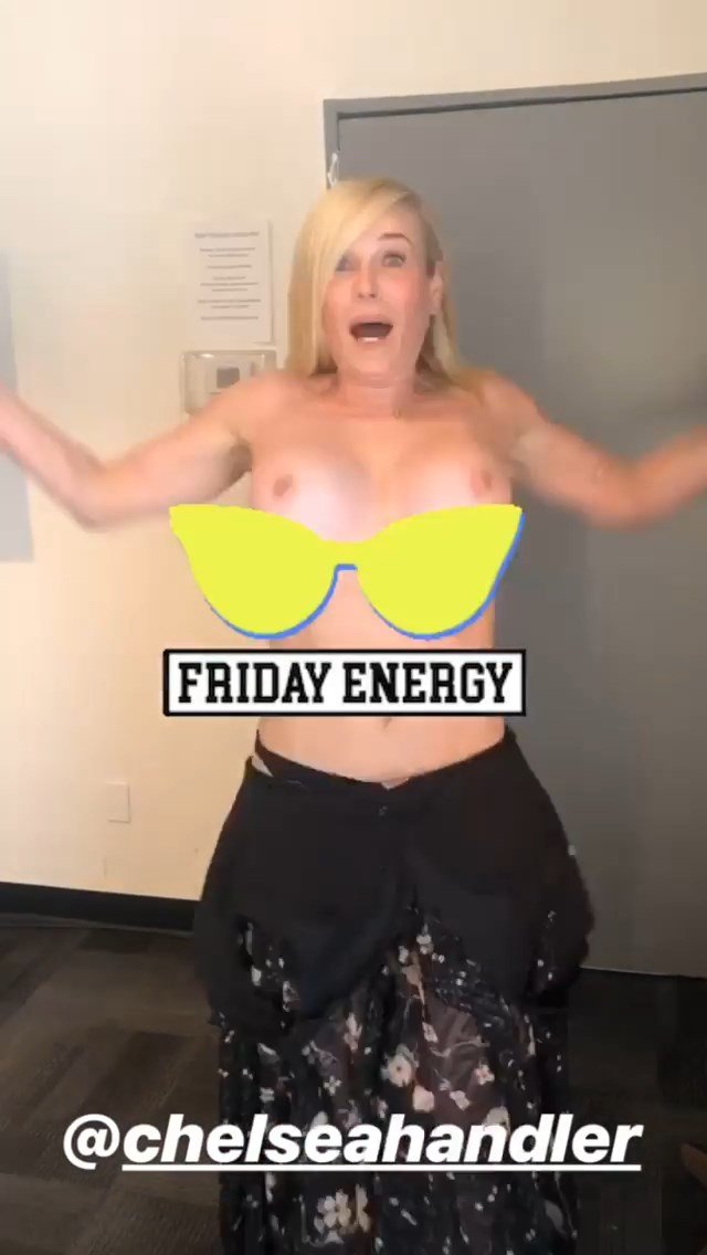 Voici trois vidéos de Chelsea Handler nue publiées sur son Snapchat / Instagram.