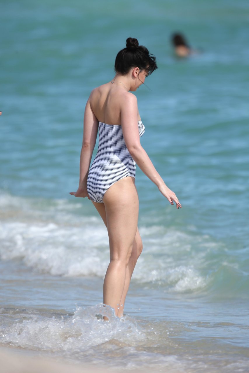 Daisy Lowe porte un maillot de bain grand-mère sur la plage à Miami, 23/12/16. Daisy Lowe est un mannequin anglais. Âge : 27 ans (27 janvier 1989).
