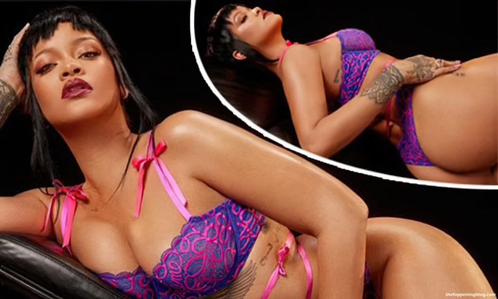 La chanteuse Rihanna offre un spectacle très coquin en lingerie violette et rose alors qu’elle fait la promotion de sa dernière collection Savage X Fenty sur Twitter, 31/08/2021.