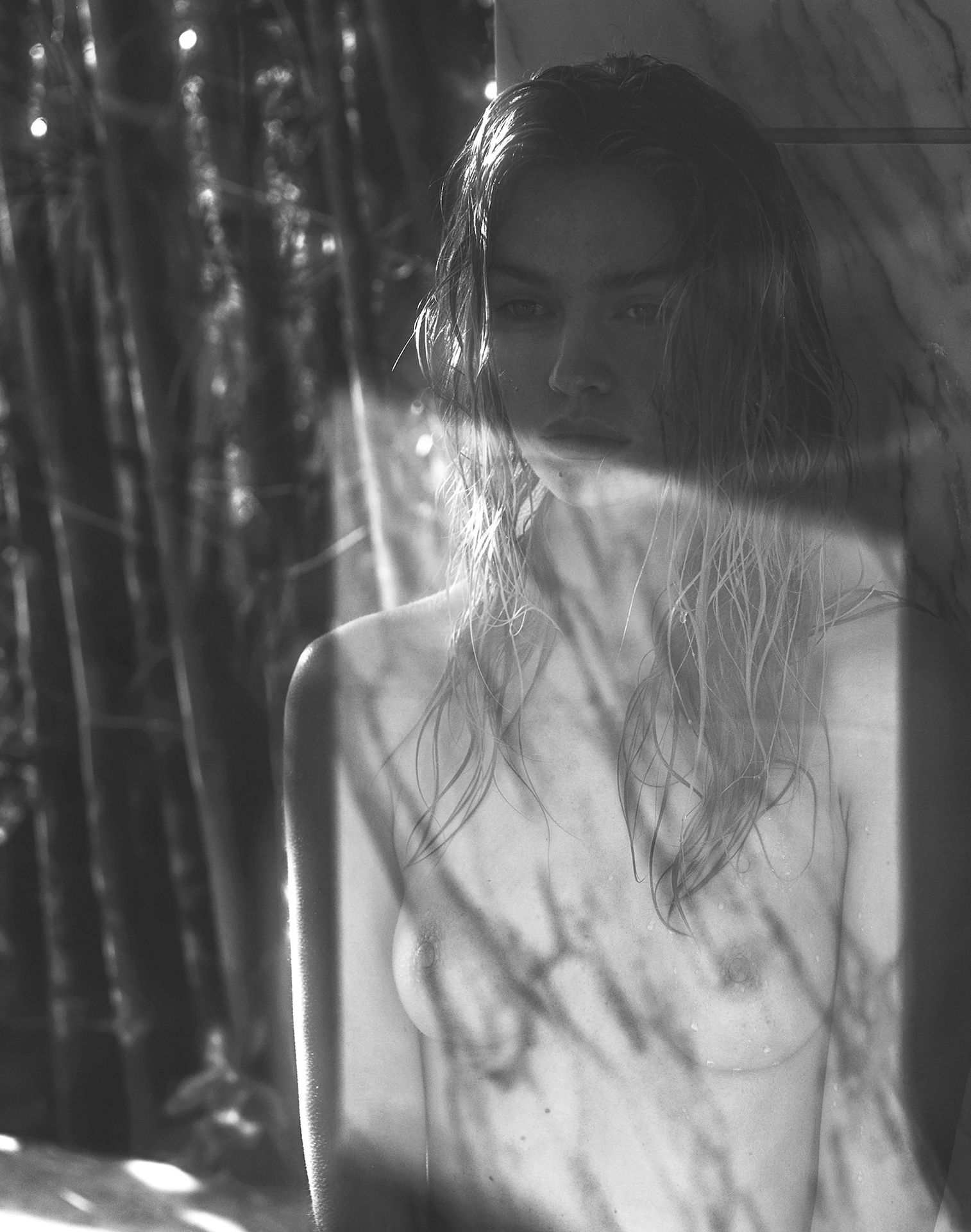 Modèle britannique/néo-zélandaise et star de The Fappening, Stella Maxwell montre ses seins nus mouillés et son corps mince dans une séance photo par Rowan Papier (mai 2020).