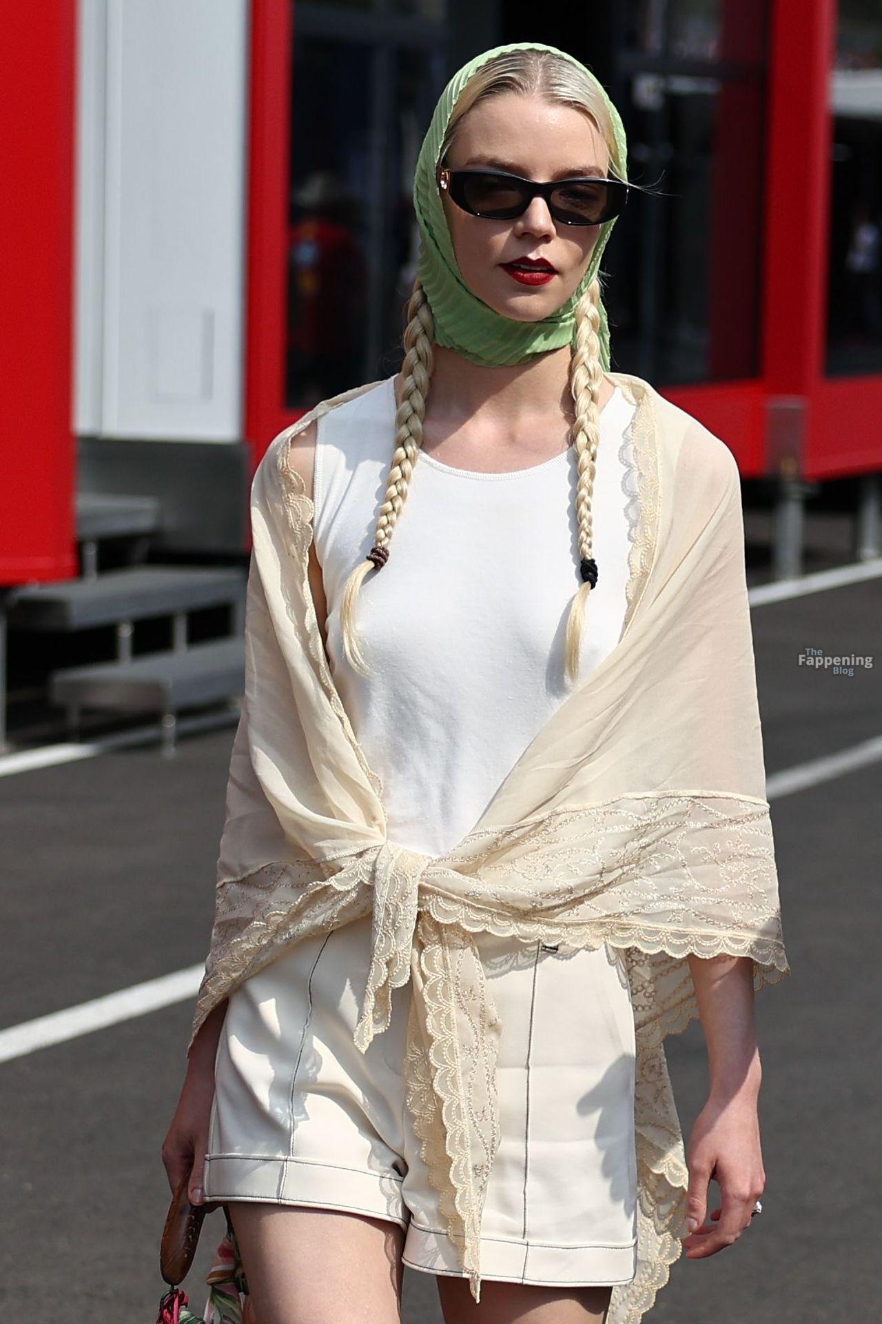 L’actrice Anya Taylor-Joy a été aperçue sans soutien-gorge dans le garage de la Scuderia Ferrari lors des qualifications du Grand Prix de Hongrie de Formule 1 au Hungaroring près de Budapest.