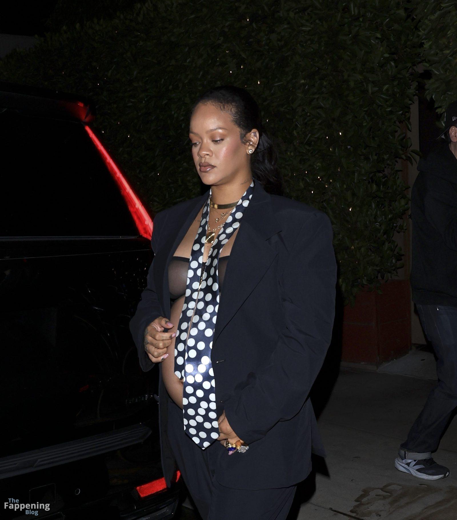 La star du Fappening Rihanna est apparue en portant un soutien-gorge transparent et un costume largement ouvert, flirtant avec un nip-slip tout en exhibant son ventre de bébé nu. Presque nue et totalement légendaire.