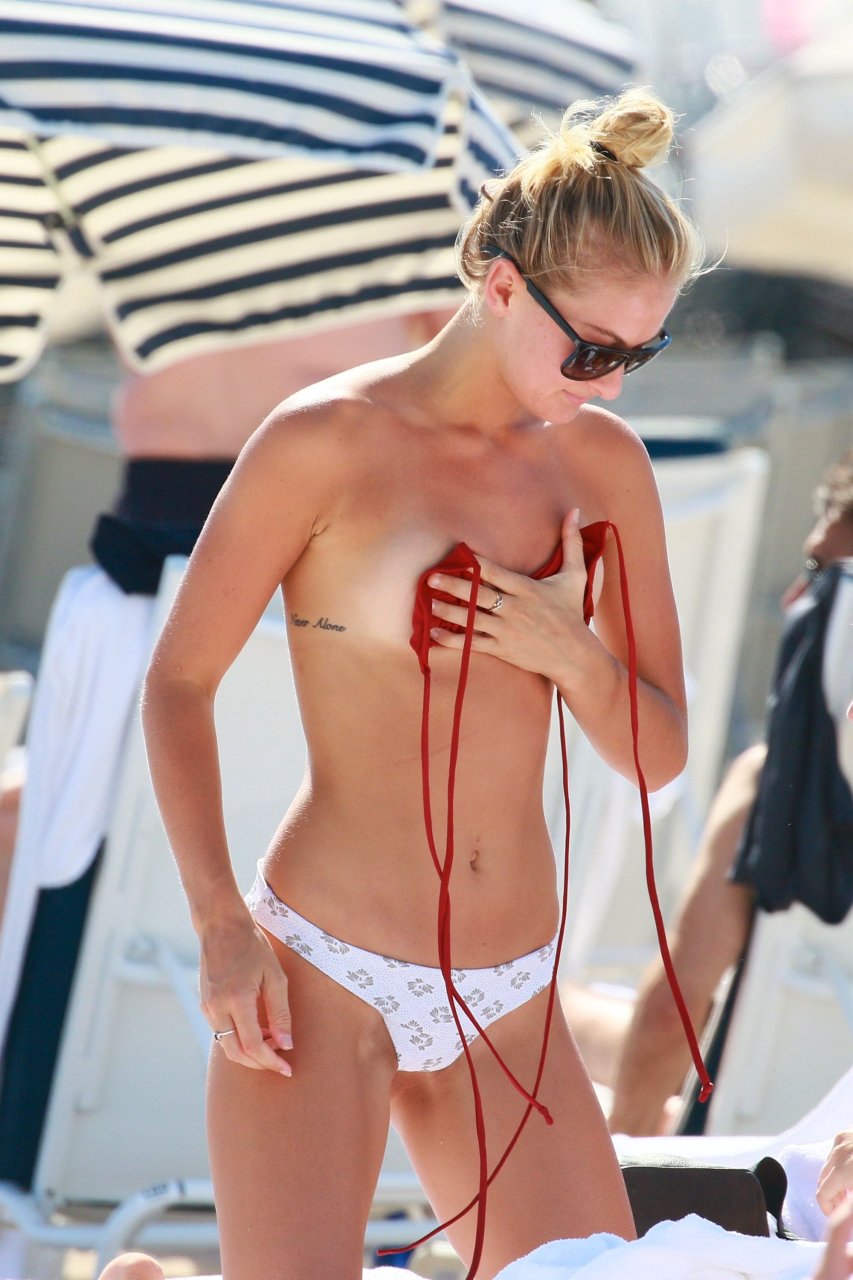 Selena Weber couvre ses petits seins à la plage de Miami, 20/01/2017. Selena Weber est un mannequin américain. Âge : 24