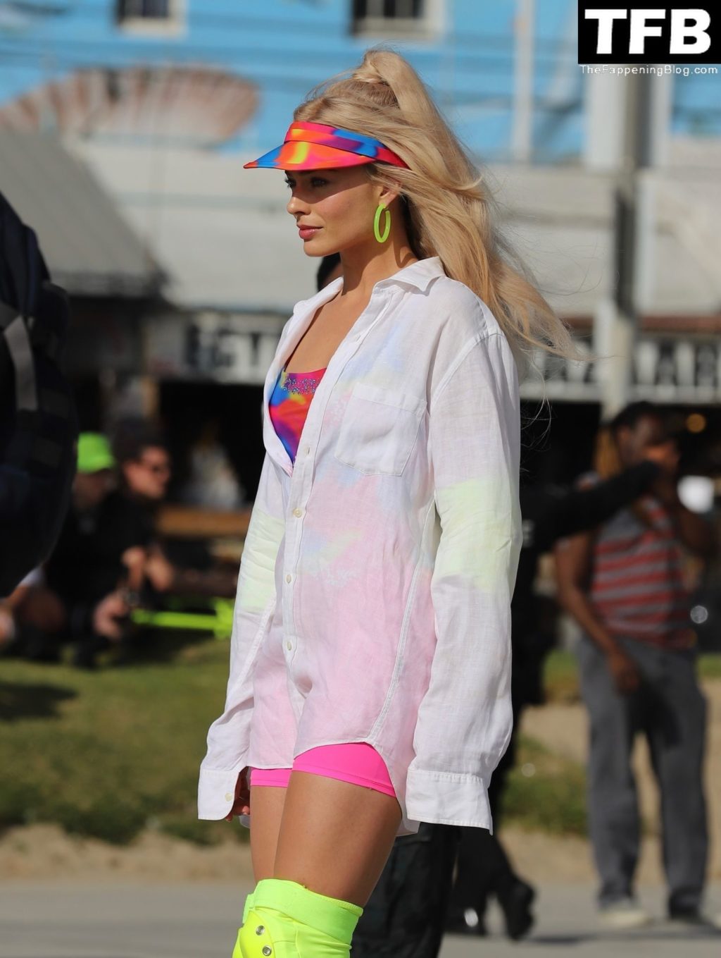 Les acteurs Margot Robbie et Ryan Gosling filment une scène de roller ‘Barbie’ à Venice Beach, 27/06/2022.