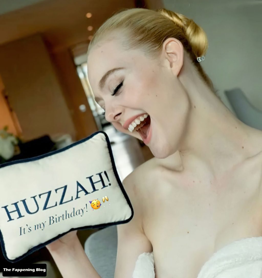 Elle Fanning affiche son décolleté et un peu de peau dans la photo sur les réseaux sociaux ci-dessous.
