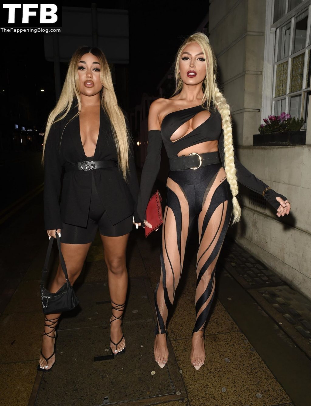 “Love Island” ZaraLena Jackson et Marlie Lewis sont vues portant des tenues audacieuses en quittant le Boujee Bar et Restaurant à Manchester, le 22/10/2021.