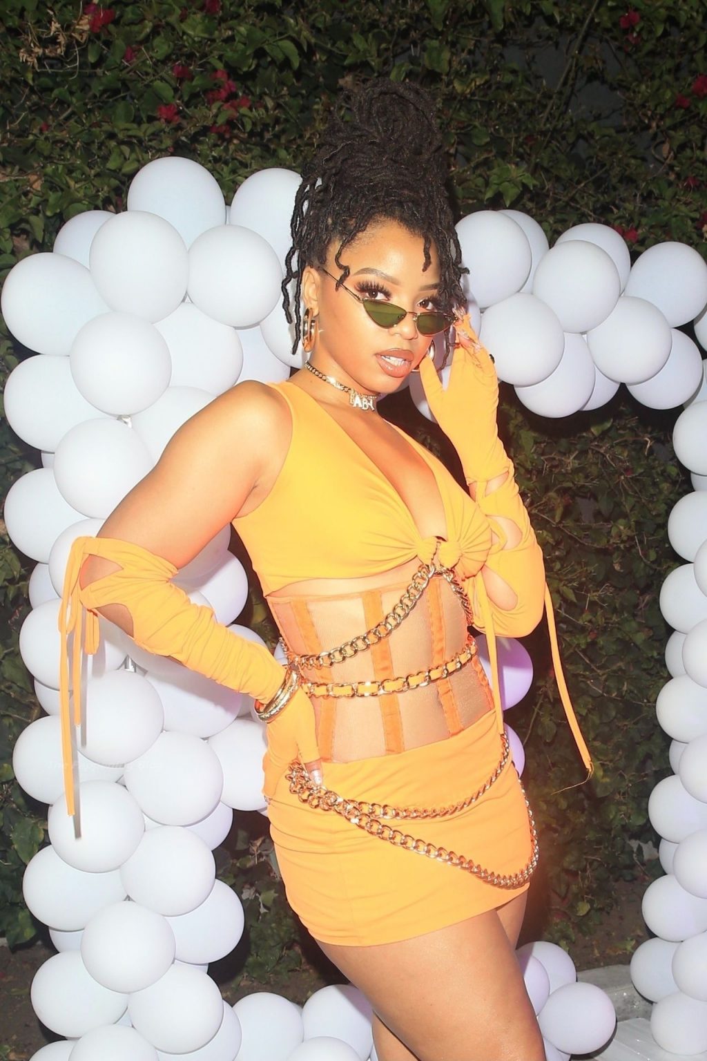 Le mannequin européen Iva Kovacevic exhibe ses courbes dans un petit bikini orange alors qu’elle fait la fête lors de l’inauguration du club de jour AYU à Las Vegas, le 07/05/2021.