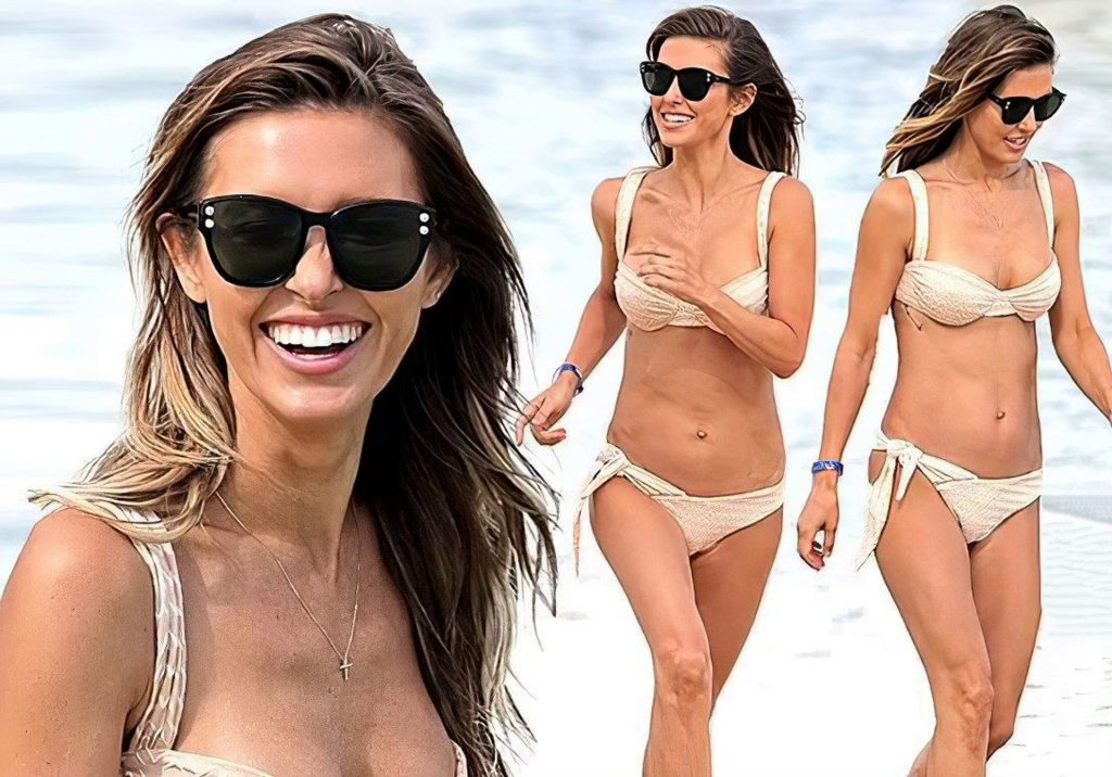 Alex et Christian ont montré un peu d’affection en public alors qu’Alex mettait en valeur sa silhouette sexy dans son bikini violet tandis que Christian était torse nu au bord de la piscine.