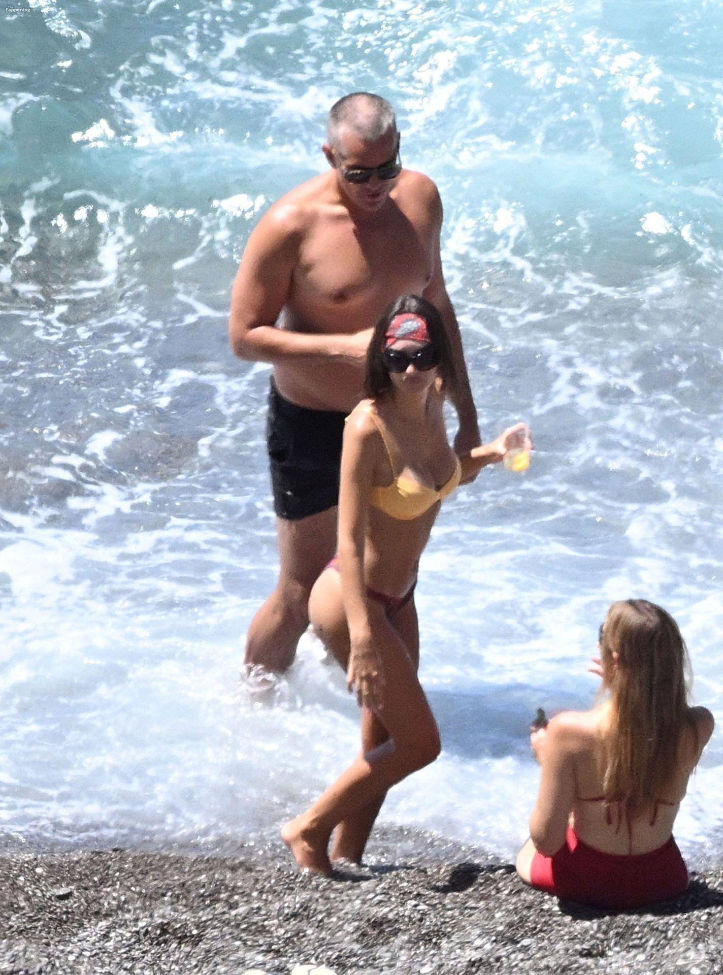 Elle se détend avec son nouvel homme, le DJ Orazio Rispo, et son fils Sylvester. Ils ont une histoire, on murmure qu’ils s’embrassaient déjà à New York en 2022. Les deux s’éclaboussaient en mer, partageant des moments tendres, avec Orazio torse nu et Emily arborant ce bikini presque invisible.