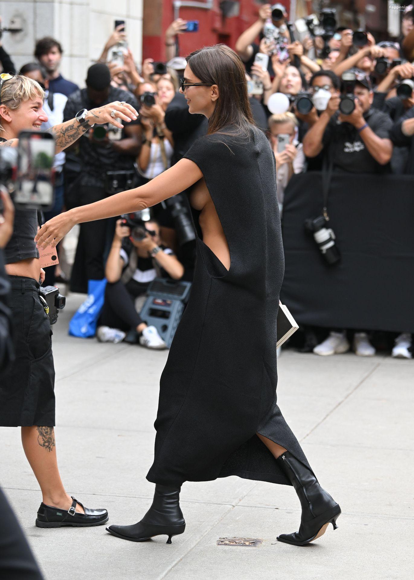 Emily Ratajkowski a été aperçue sans soutien-gorge au défilé de mode Calvin Klein pendant la Semaine de la Mode de New York à la Brant Foundation à NYC.