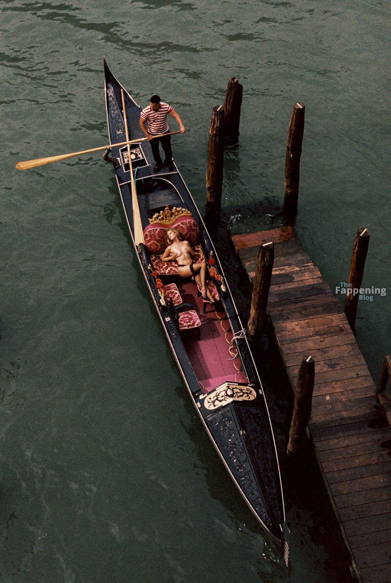 Natalie Roser montre ses seins nus et ses fesses à Venise. Découvrez ses clichés en lingerie transparente et en résille.