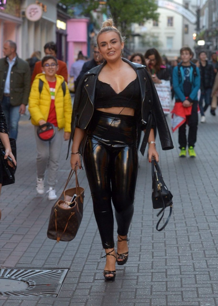 La chanteuse Tallia Storm a été vue en pantalon en cuir dans Carnaby Street à Londres, le 25/04/2019.