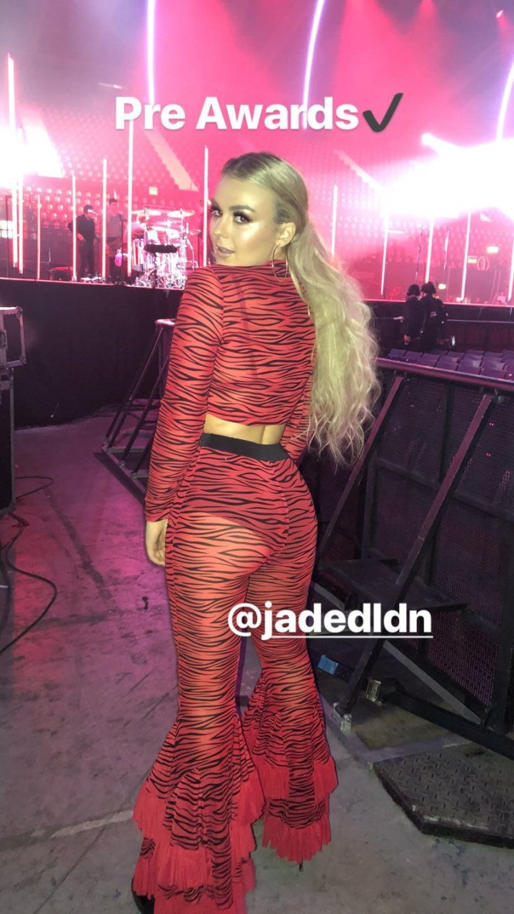 Tallia Storm assiste aux BBC Radio 1 Teen Awards à Londres, le 21/10/2018. La chanteuse de 19 ans portait une tenue rouge transparente laissant voir sa lingerie noire.