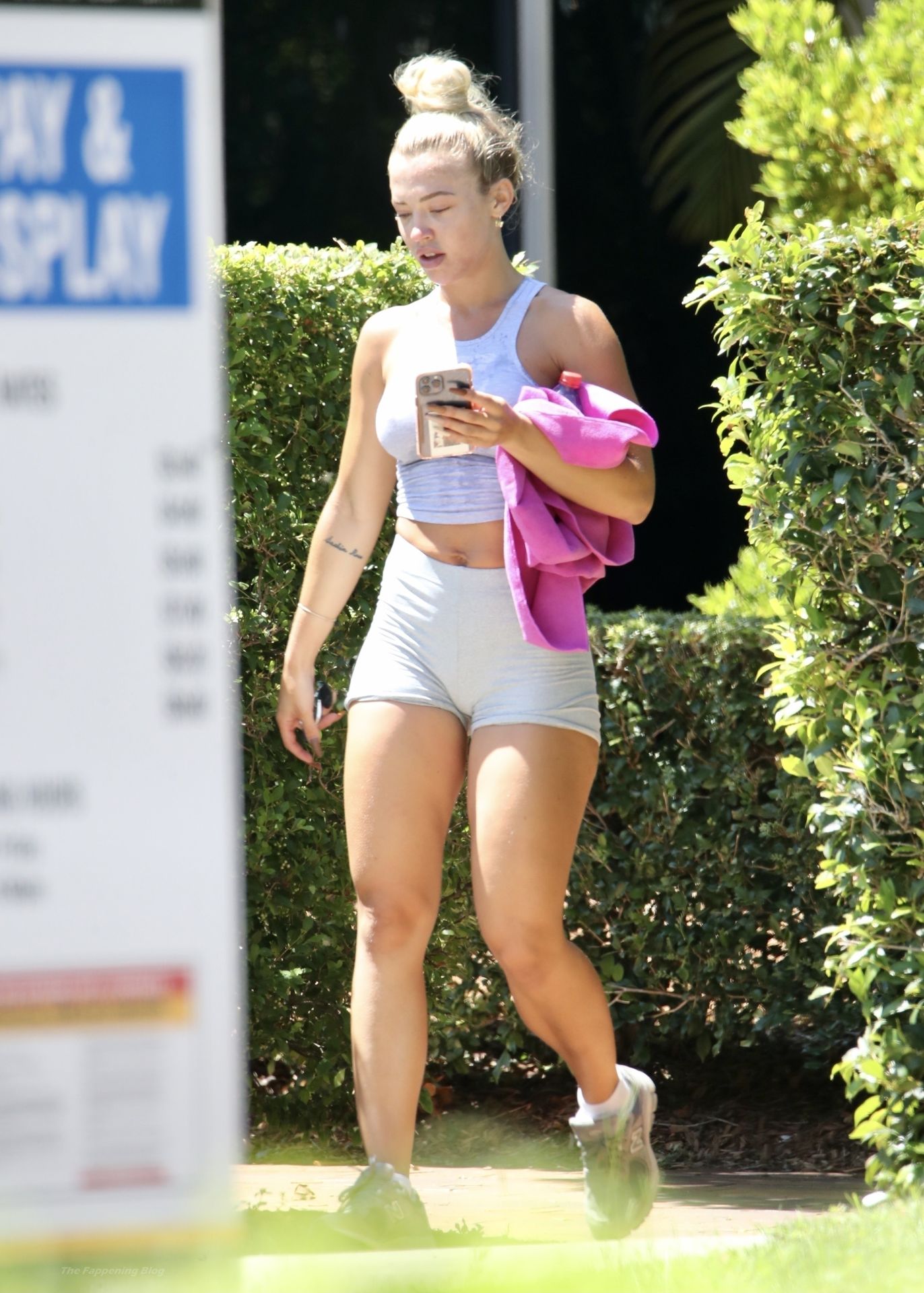 Tammy Hembrow en sueur quitte la salle de sport après sa séance d’entraînement quotidienne à Brisbane, 03/02/2021.