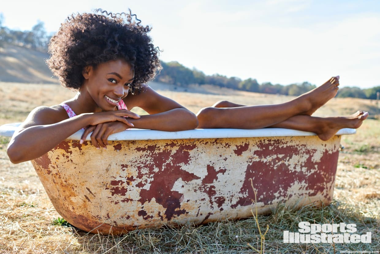 Une beauté noire inhabituelle, Tanaye White, est très sexy dans une nouvelle séance photo en bikini réalisée par Anne Menke au ranch de Sacramento pour le numéro Sports Illustrated Maillot de Bain 2021.