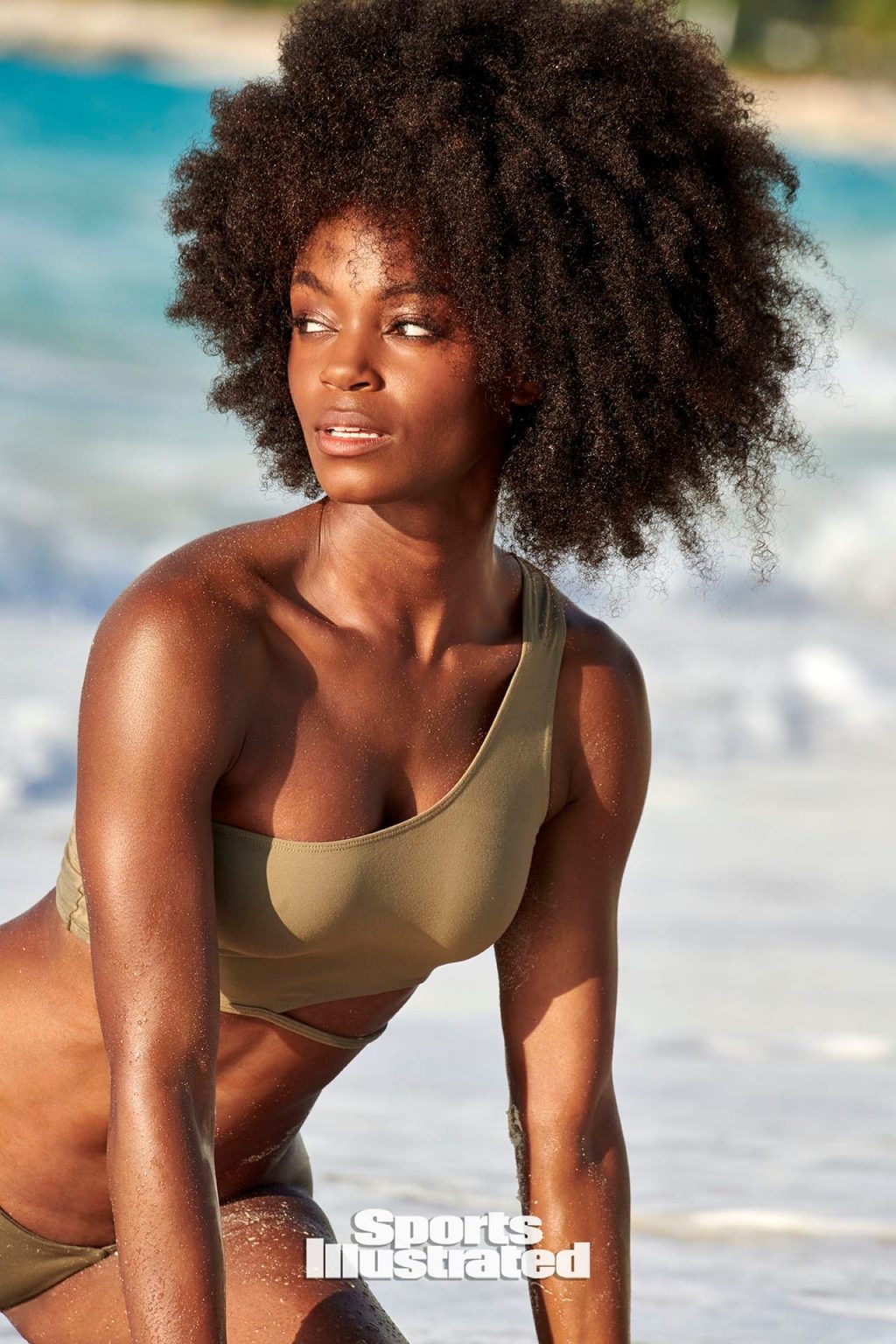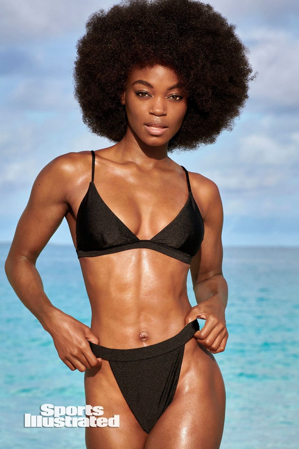 Le mannequin noir américain affiche son corps tonique et sexy sur la plage en bikini lors d’une séance photo pour le numéro Sports Illustrated Maillot de bain 2020.