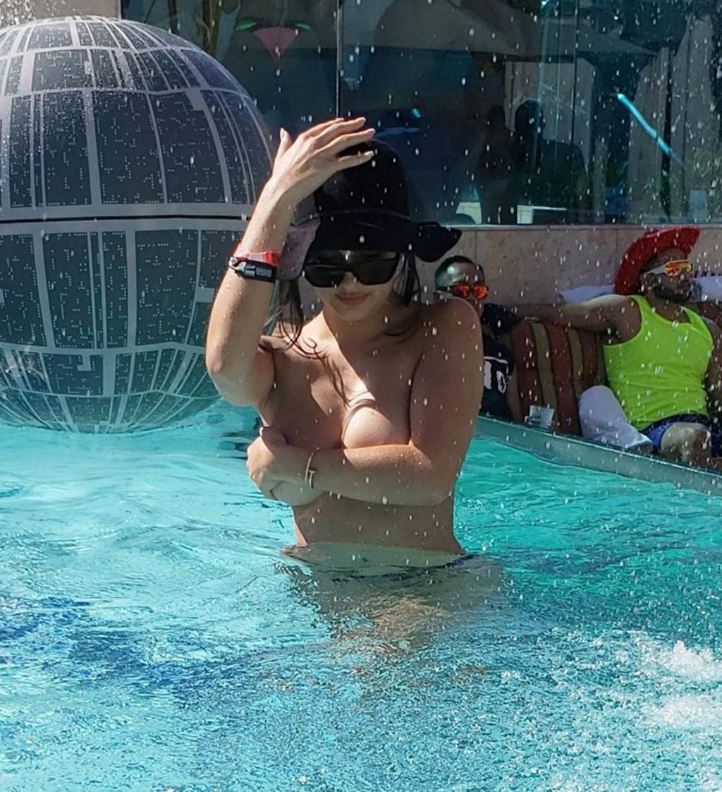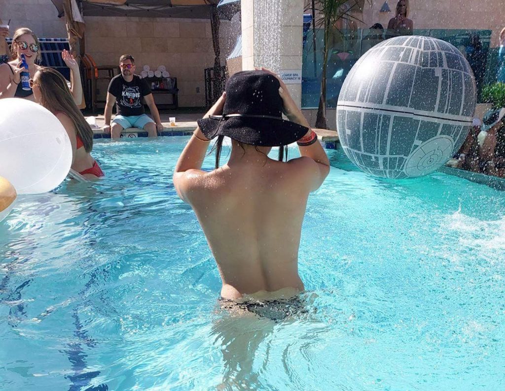 Je vous ai dit que j’avais des photos des seins nus de Tao Wickrath ici, n’est-ce pas ? Eh bien, maintenant, il est temps de vous les montrer ! Tao Wickrath, mannequin française, se dénude en dansant lors d’une fête à la piscine d’un club de strip-tease et bronze en tenant une canette de Corona lors du Cinco de Mayo à Las Vegas le 5 mai 2019.The model was having fun in the VIP pool at Sapphire’s day club, where there was a Star Wars death star balloon next to her. Tao was also seen later at the Caesar’s Palace pool, with a can in her lap, celebrating the Mexican holiday in the hot sun.