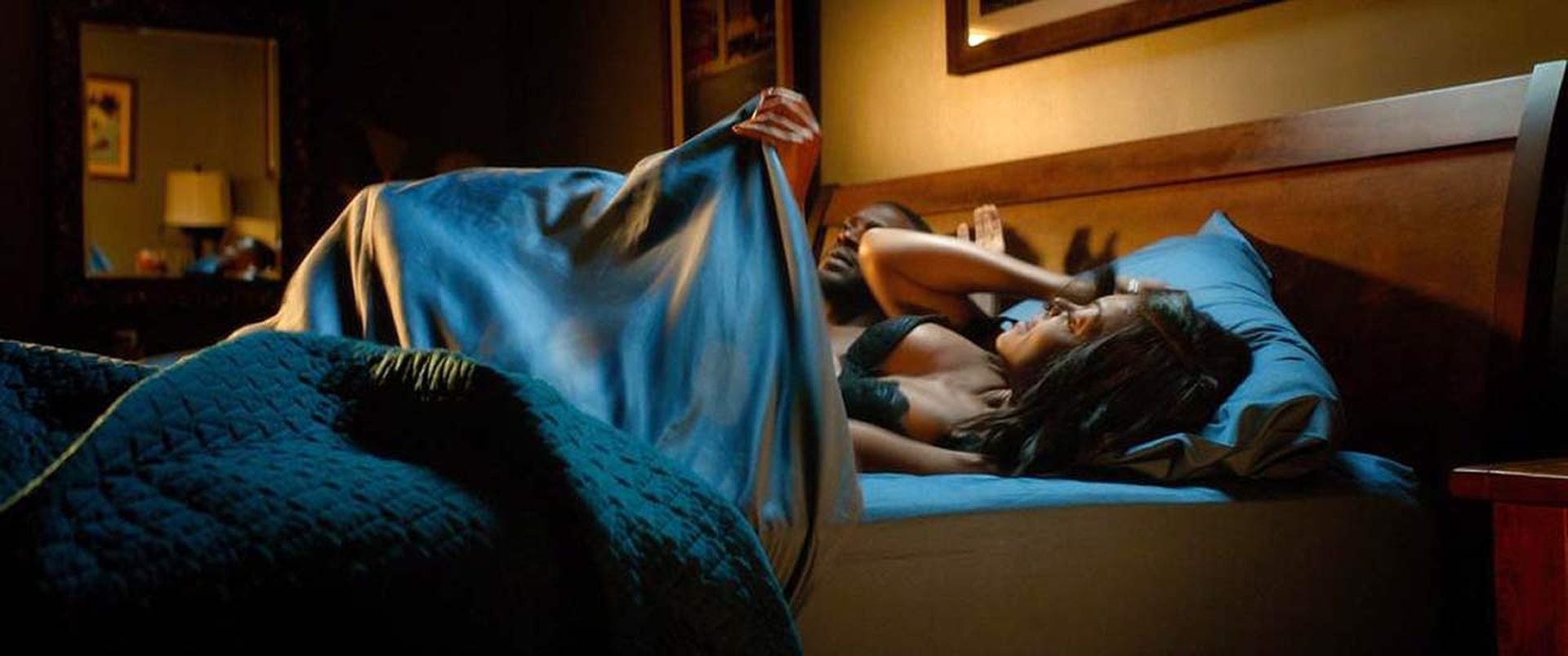 Dans la 2ème scène, vous pouvez voir cette star noire sexy courir dans l’appartement en essayant d’enlever son chemisier tout en se disputant avec son ex-amant ! Puis son sein glisse hors du soutien-gorge, et elle s’en fiche car elle est toujours fâchée !