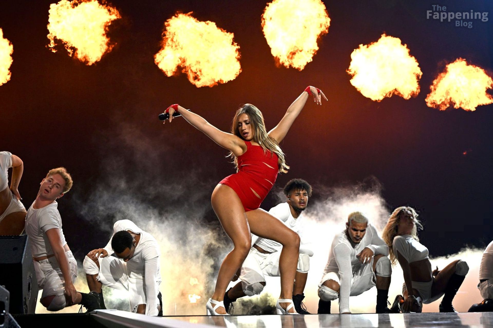Le postérieur, le décolleté et les cuisses de la chanteuse, auteure-compositrice et danseuse canadienne Tate McRae ont dominé iHeartRadio Vegas, se pliant, s’écartant et se déhanchant dans ce body rouge moulant.