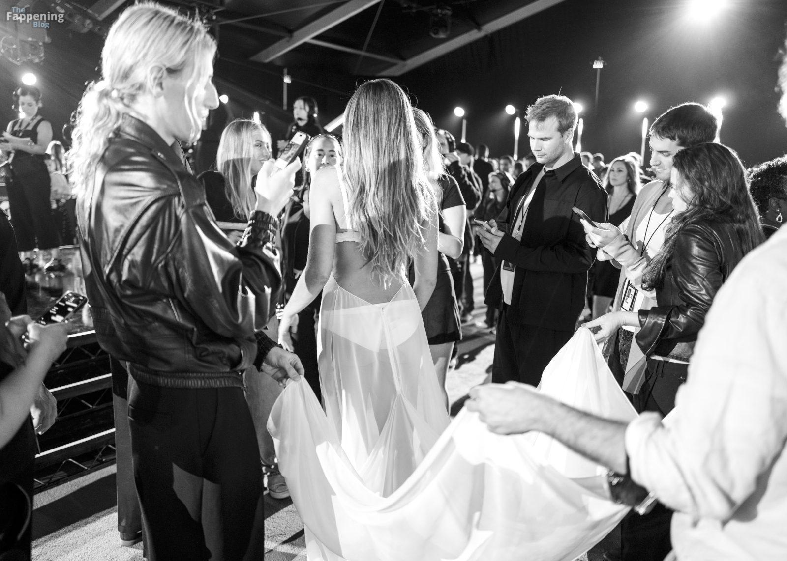 La chanteuse Tate McRae est photographiée aux VMAs dans une robe blanche transparente. Découvrez ses atouts dans la galerie ci-dessous.