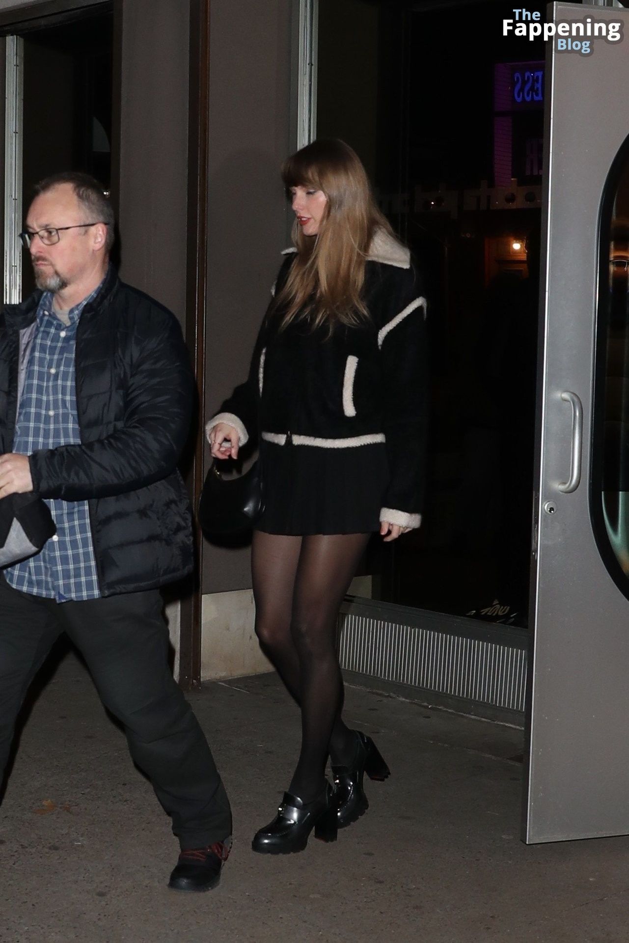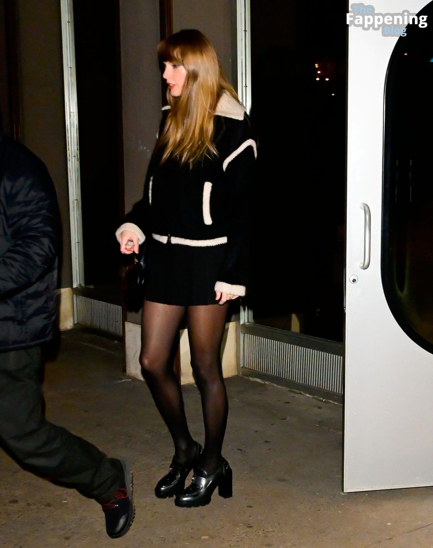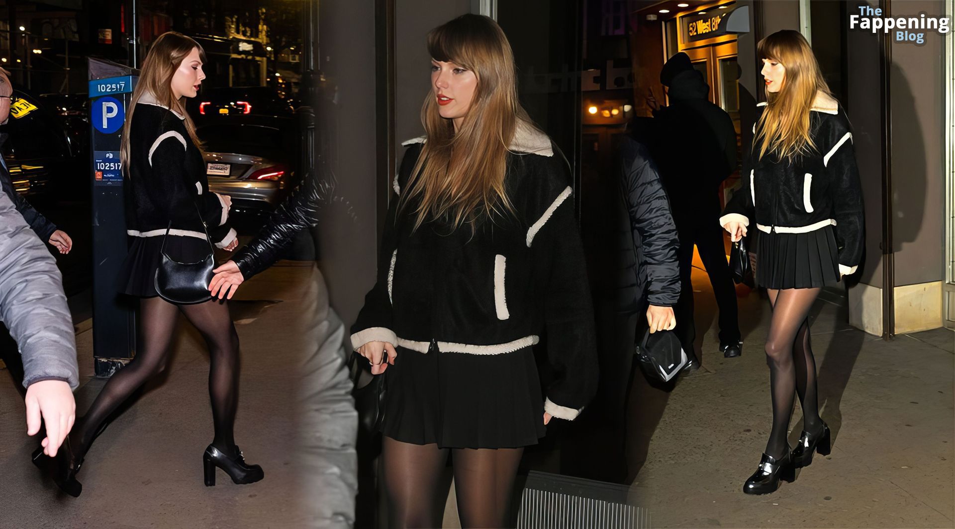 Découvrez Taylor Swift portant des bas noirs et une mini-jupe, une combinaison de mode mortelle qui captive et fascine totalement alors qu’elle quitte l’Electric Lady Studio à New York.