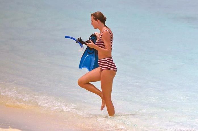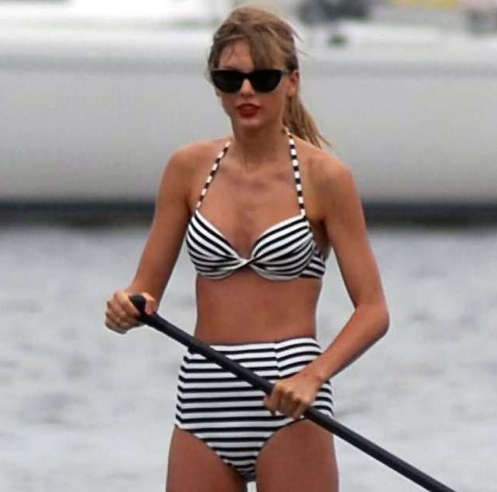 While her rivals are trying to be sexy all the time, this singer doesn’t give a fuck! Ahaha. Taylor Swift’s bikini pics will show you how creepy she looks when cameras are off, and she is on her own! Paparazzi caught Taylor and her boyfriend Joe Alvin enjoying the sunny day and swimming on the Islands. Taylor is someone who likes to hide her personal and sex life from the public, so this paparazzi gallery with some skin pics is an absolute fortune to us! Enjoy watching flat ass, romantic looks, granny bikini, and wasted woman’s body potential!