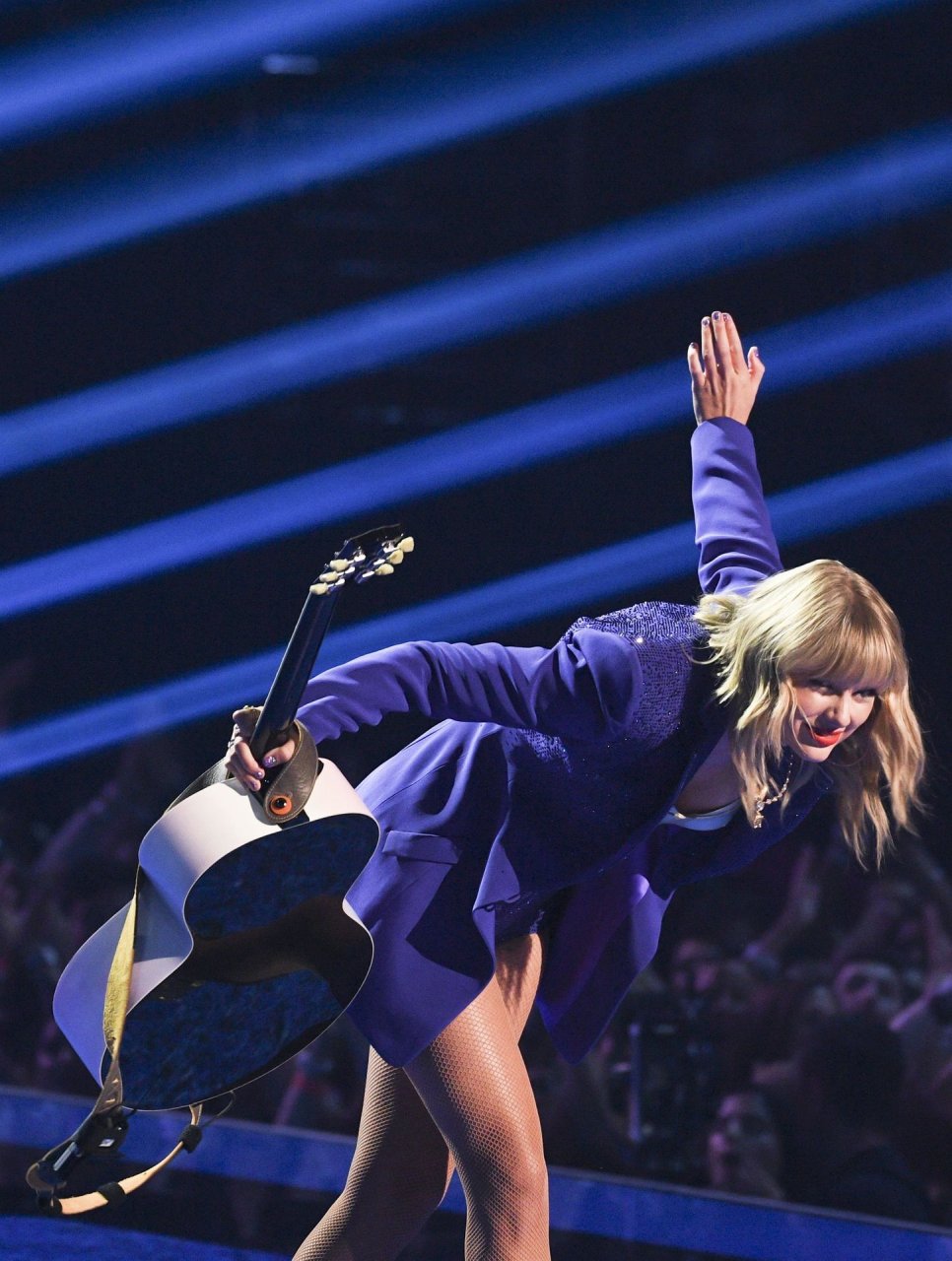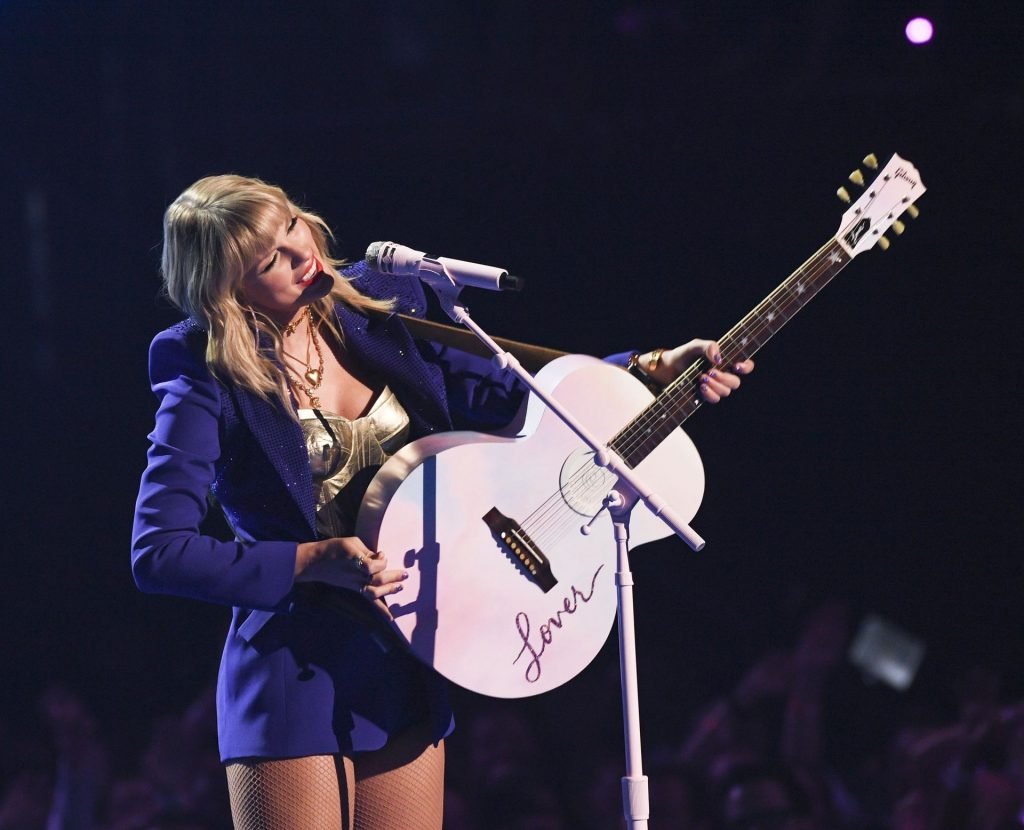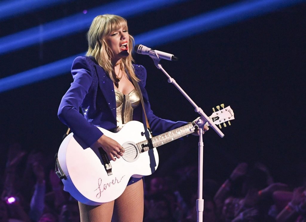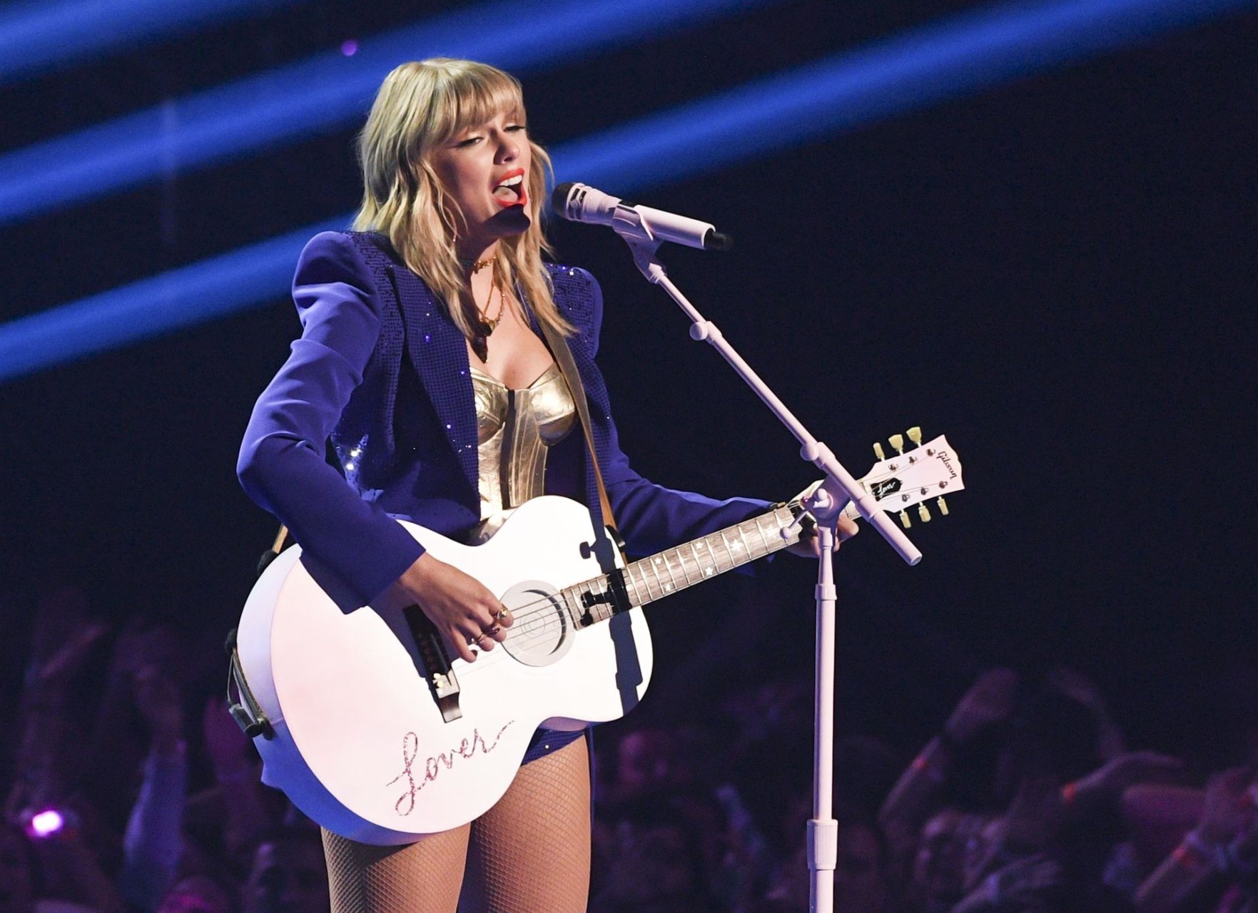 Taylor Swift se produit lors des MTV Video Music Awards 2019 au Prudential Center à Newark, New Jersey, le 26/08/2019.
