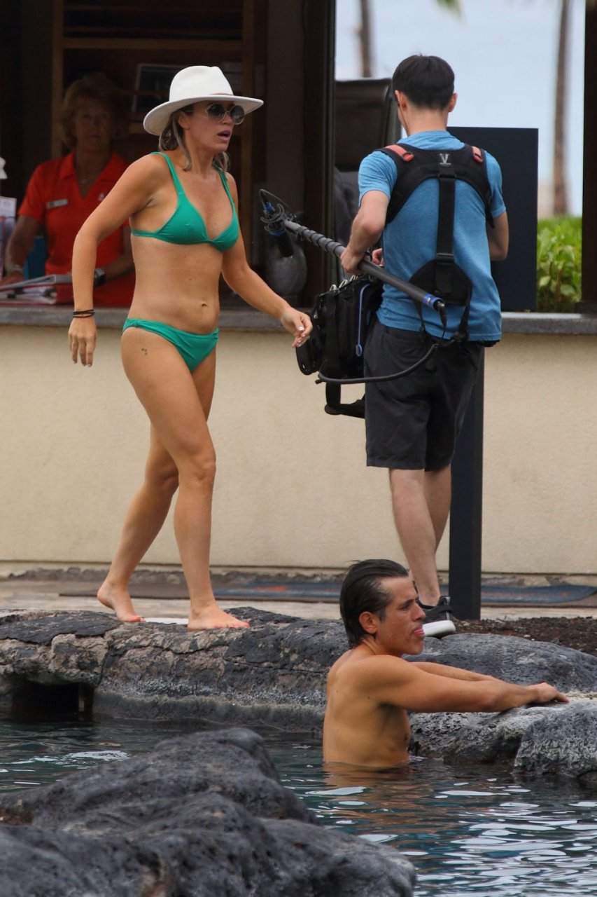 Teddi Jo Mellencamp a été vue portant un bikini vert au bord de la piscine le jour du mariage de sa collègue Camille Grammer à Hawaï, le 20/10/2018. Teddi Mellencamp Arroyave est une star de la télé-réalité de 37 ans (The Real Housewives of Beverly Hills).