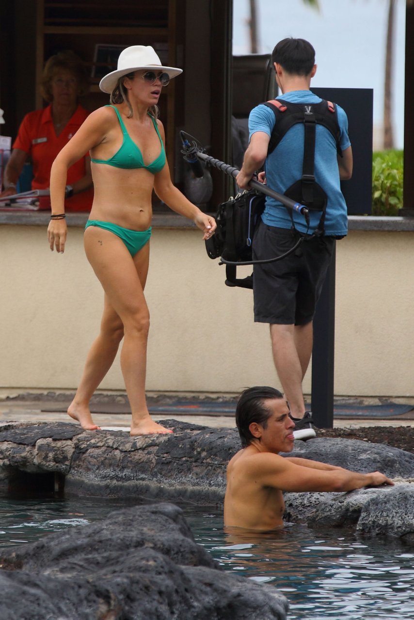 Teddi Jo Mellencamp a été vue portant un bikini vert au bord de la piscine le jour du mariage de sa collègue Camille Grammer à Hawaï, le 20/10/2018. Teddi Mellencamp Arroyave est une star de la télé-réalité de 37 ans (The Real Housewives of Beverly Hills).