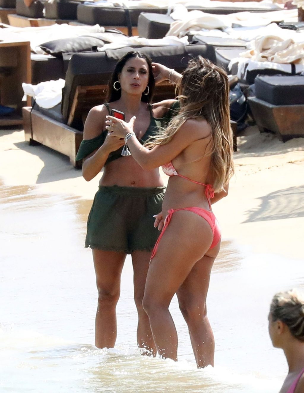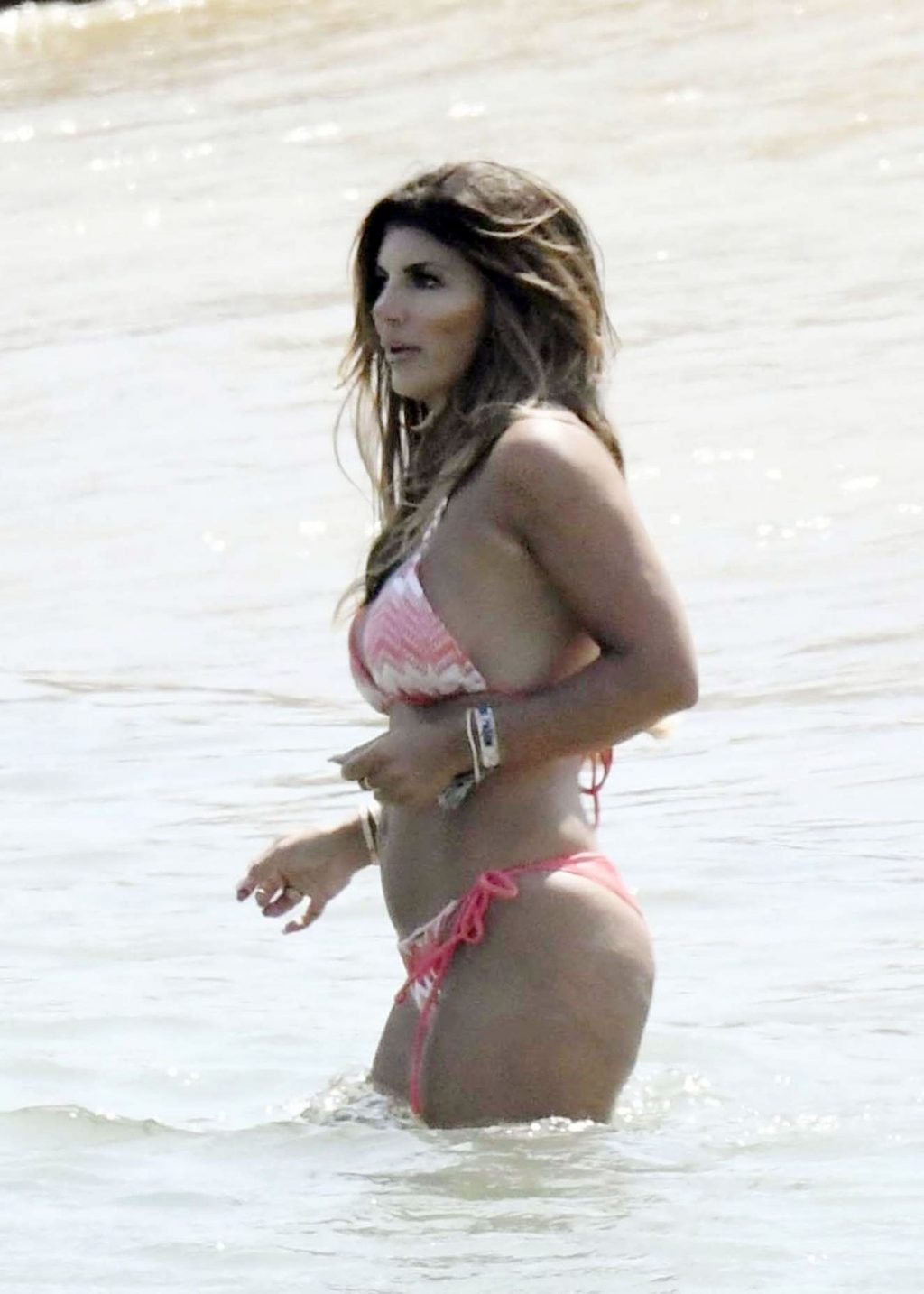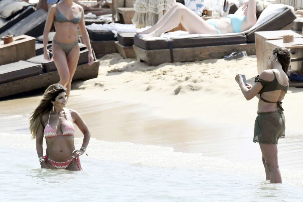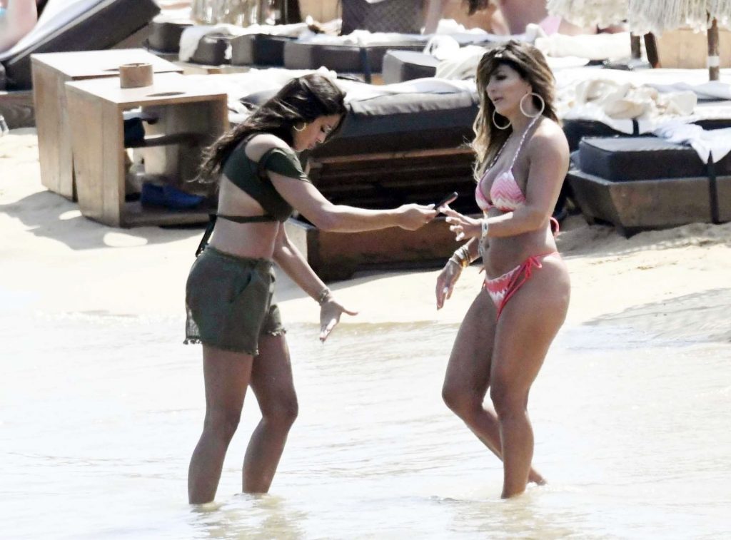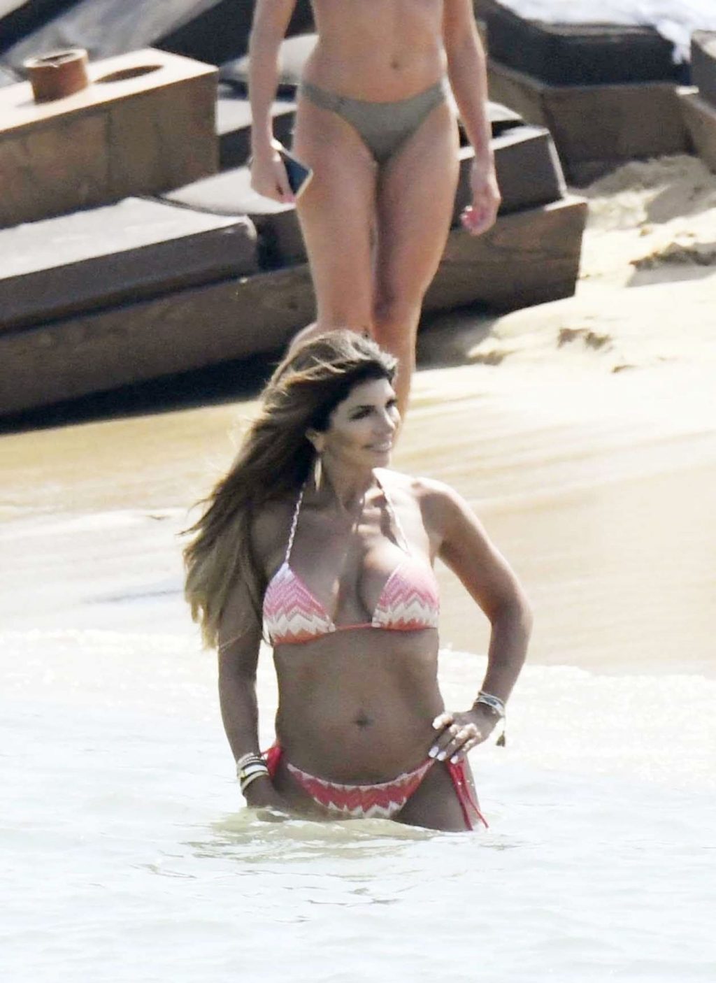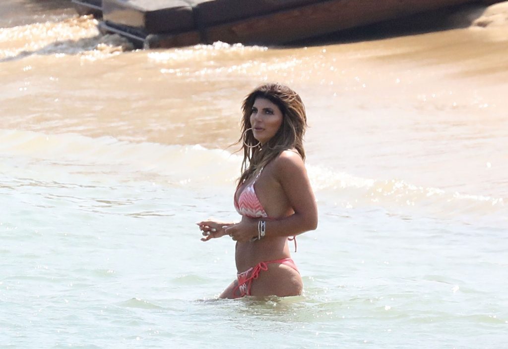 La star de la télé-réalité de 47 ans Teresa Giudice éblouit dans un bikini rose à col halter tout en se relaxant sur la plage de Mykonos, 25/08/2019.
