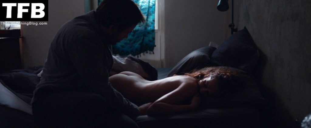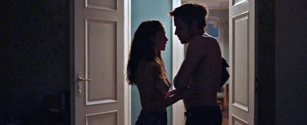 Teresa Palmer has vigorous sex on the floor. She is lying on her back on the floor and making out with the guy. Then he pulls her trousers, and she is raising her hips as we get a great look at her nude butt. Then they have intensive sex on the floor. Watch Teresa Palmer bare butt in a nude sex scene from ‘Berlin Syndrome’ movie.