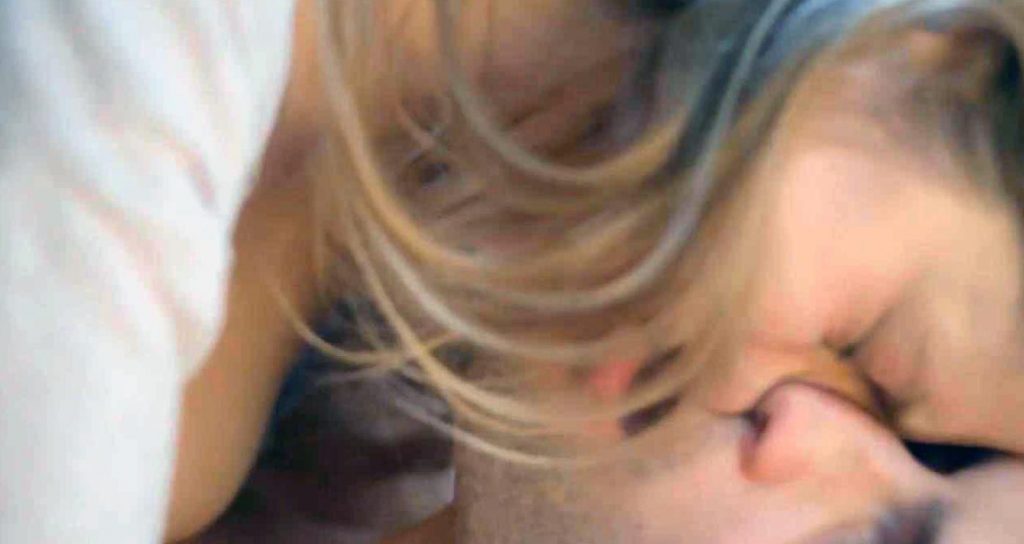 Teresa Palmer is making out with a man in a doorway, who first raises her shirt to expose her bra, then removes the bra, leaving Teresa topless. As she lies back on a bed, the man bends over to suck on her breasts before kissing his way down to her shorts; we get a better view of her breasts. The man then unbuttons and takes them off, allowing him to fall on her.