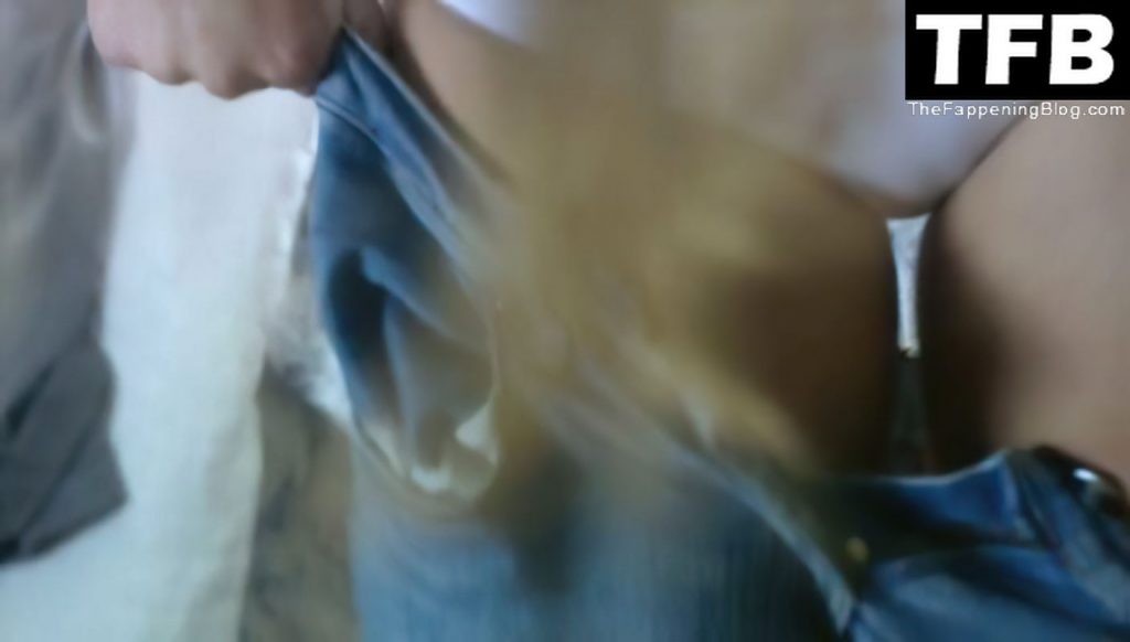 Teresa Palmer, célèbre pour ‘The Grudge 2‘, porte un pull vert et une culotte blanche alors qu’elle se promène dans une pièce puis met un jean bleu, nous offrant un gros plan de sa culotte et de son cameltoe avec le contour de ses lèvres visible.