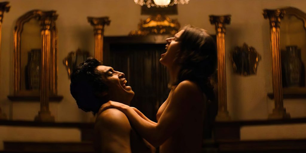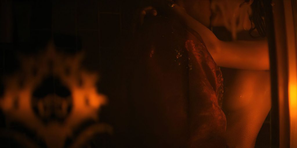 Dans la troisième scène, Tessa apparaît complètement nue, debout dans l’embrasure d’une porte éclairée par l’arrière. Puis elle montre ses fesses et se retourne pour montrer sa nudité frontale complète. Elle guide un homme à travers une maison envahie par les plantes dans une séquence de rêves. L’homme la suit dans la salle de bain, où vous voyez un peu plus d’elle topless quand l’homme la rejoint sous la douche et ils s’embrassent. Nous supposons que le sexe a suivi, mais les réalisateurs ne nous ont donné que cela… malheureusement.