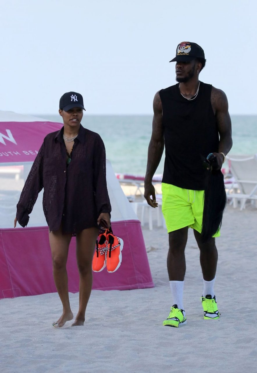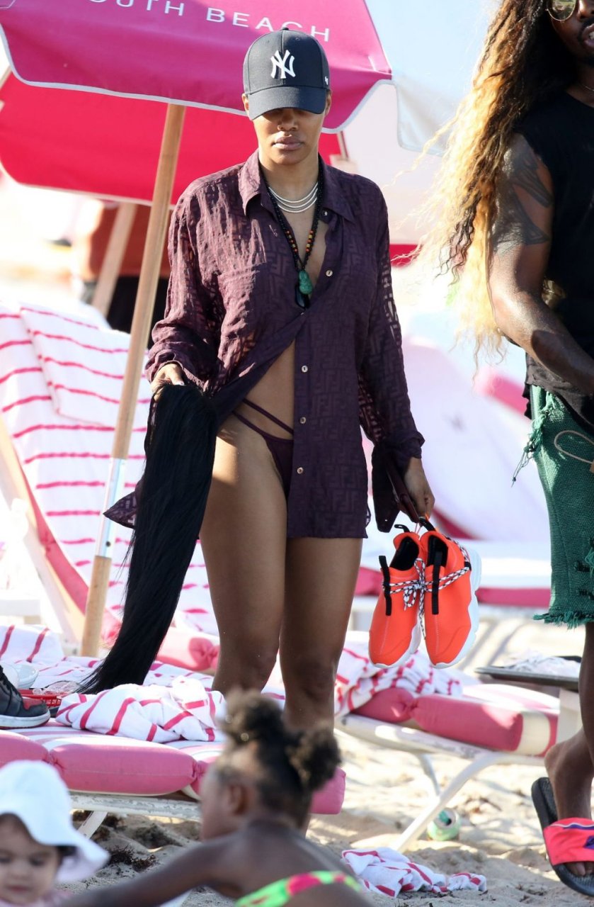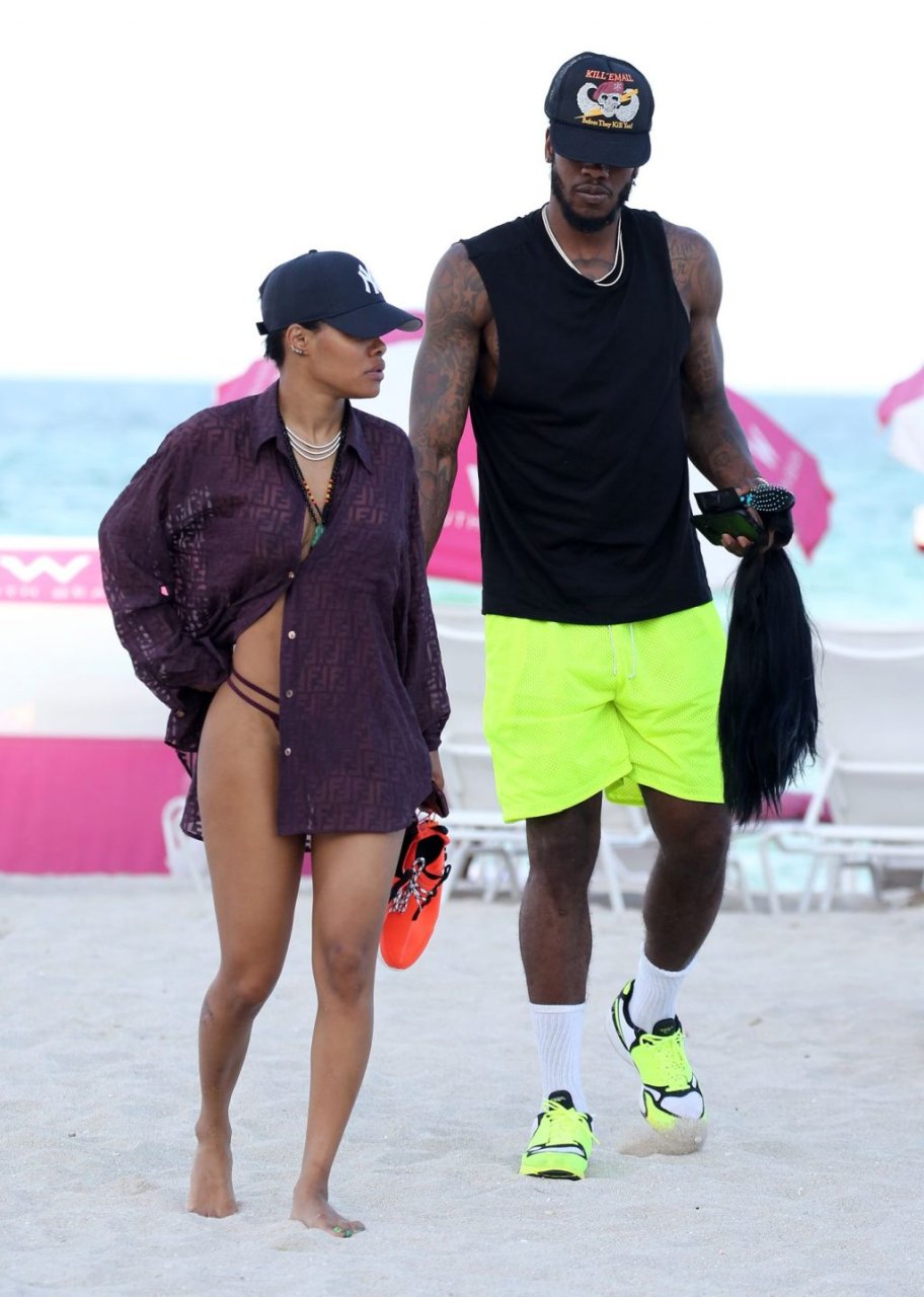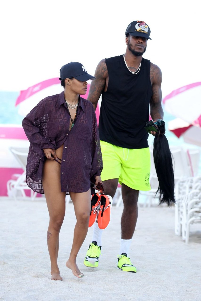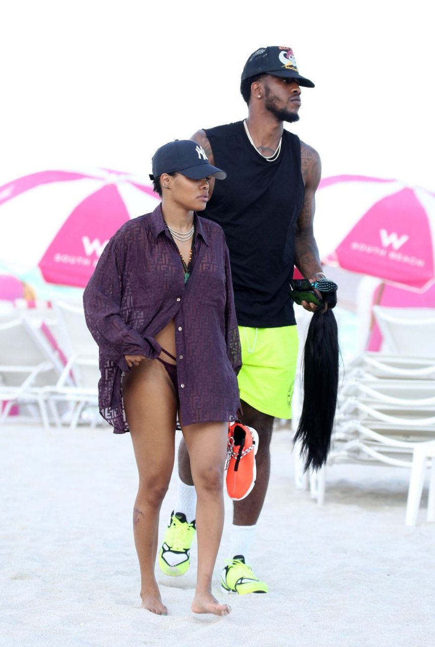 La chanteuse Teyana Taylor (28 ans) passe une journée en famille à la plage avec son mari, le joueur NBA des Houston Rockets Iman Shumpert, et leur fille à Miami Beach, Floride, le 02/07/2019.