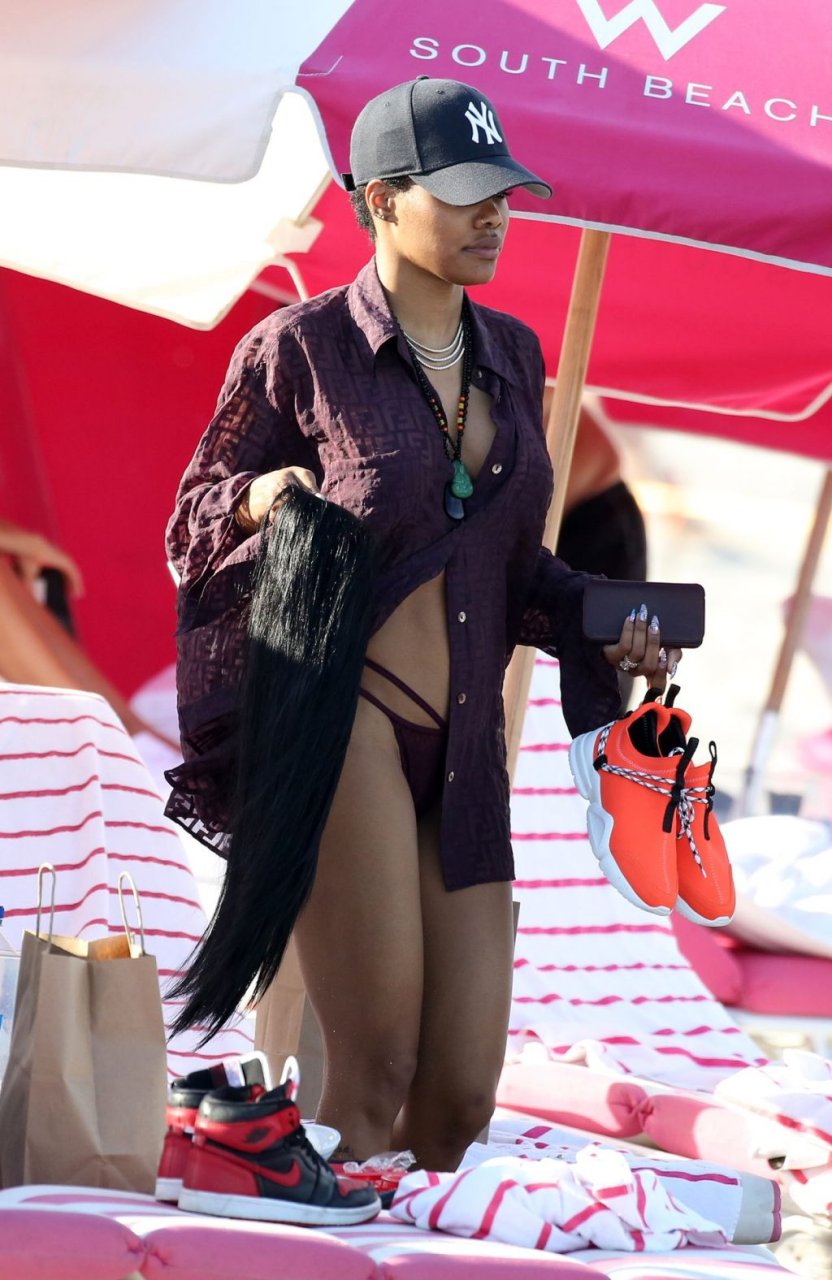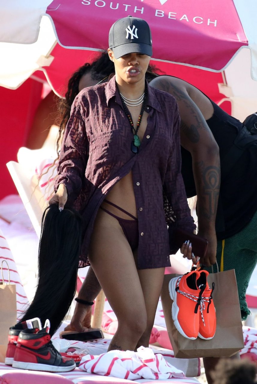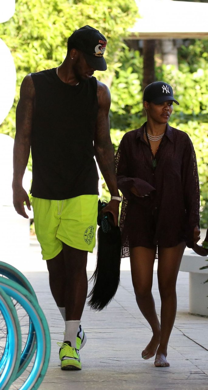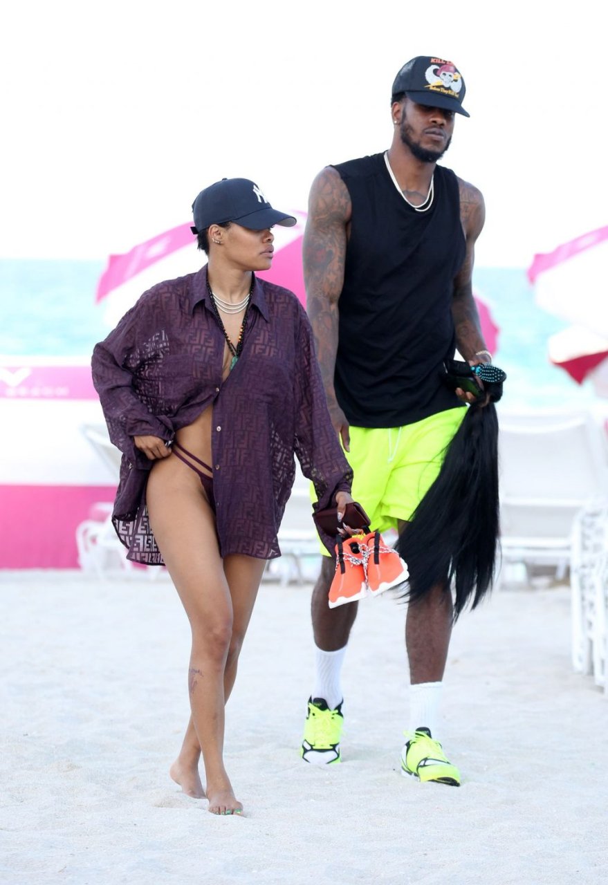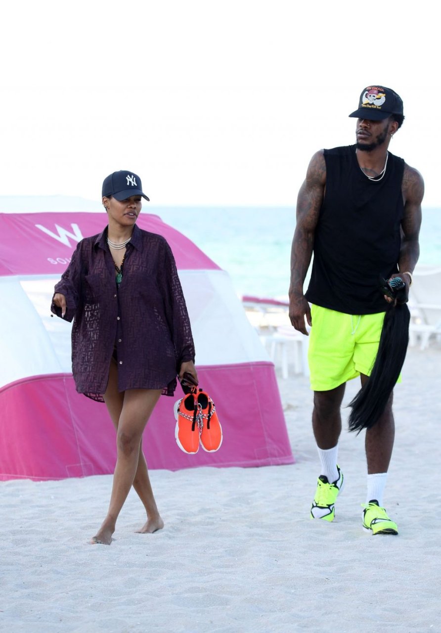 La chanteuse Teyana Taylor (28 ans) passe une journée en famille à la plage avec son mari, le joueur NBA des Houston Rockets Iman Shumpert, et leur fille à Miami Beach, Floride, le 02/07/2019.