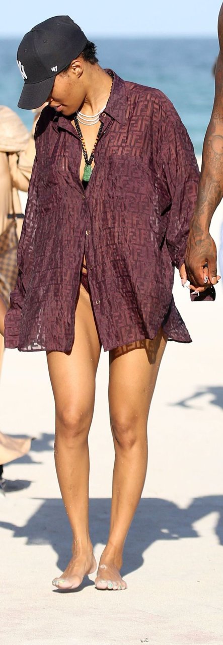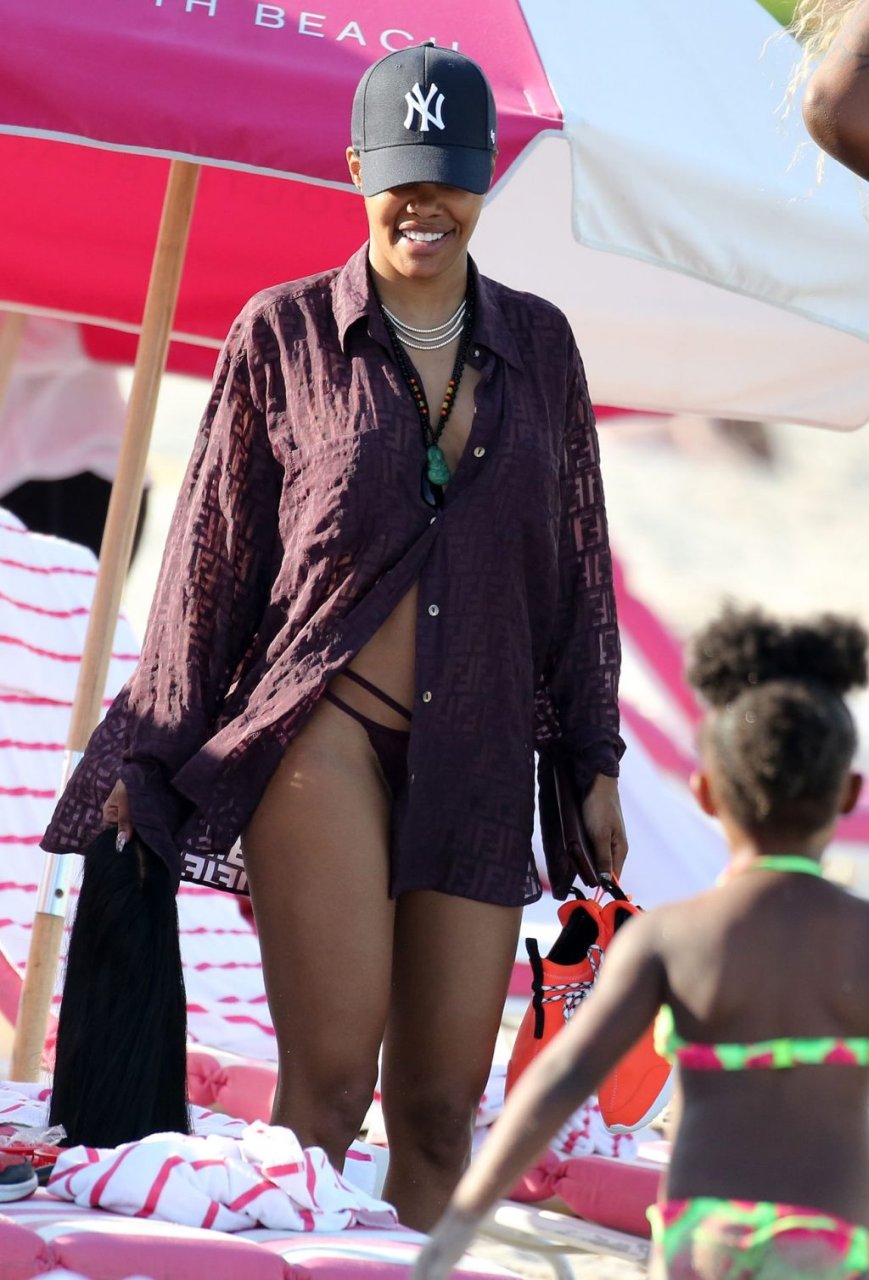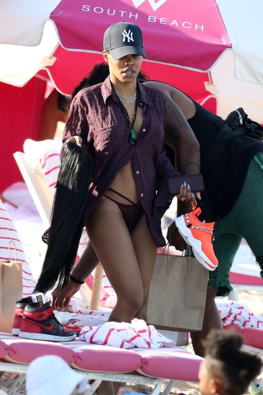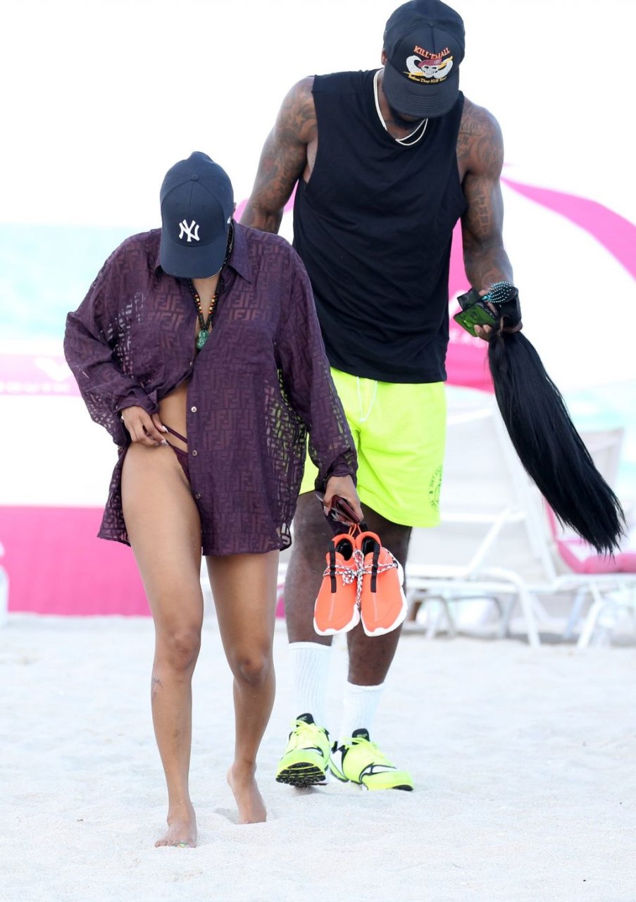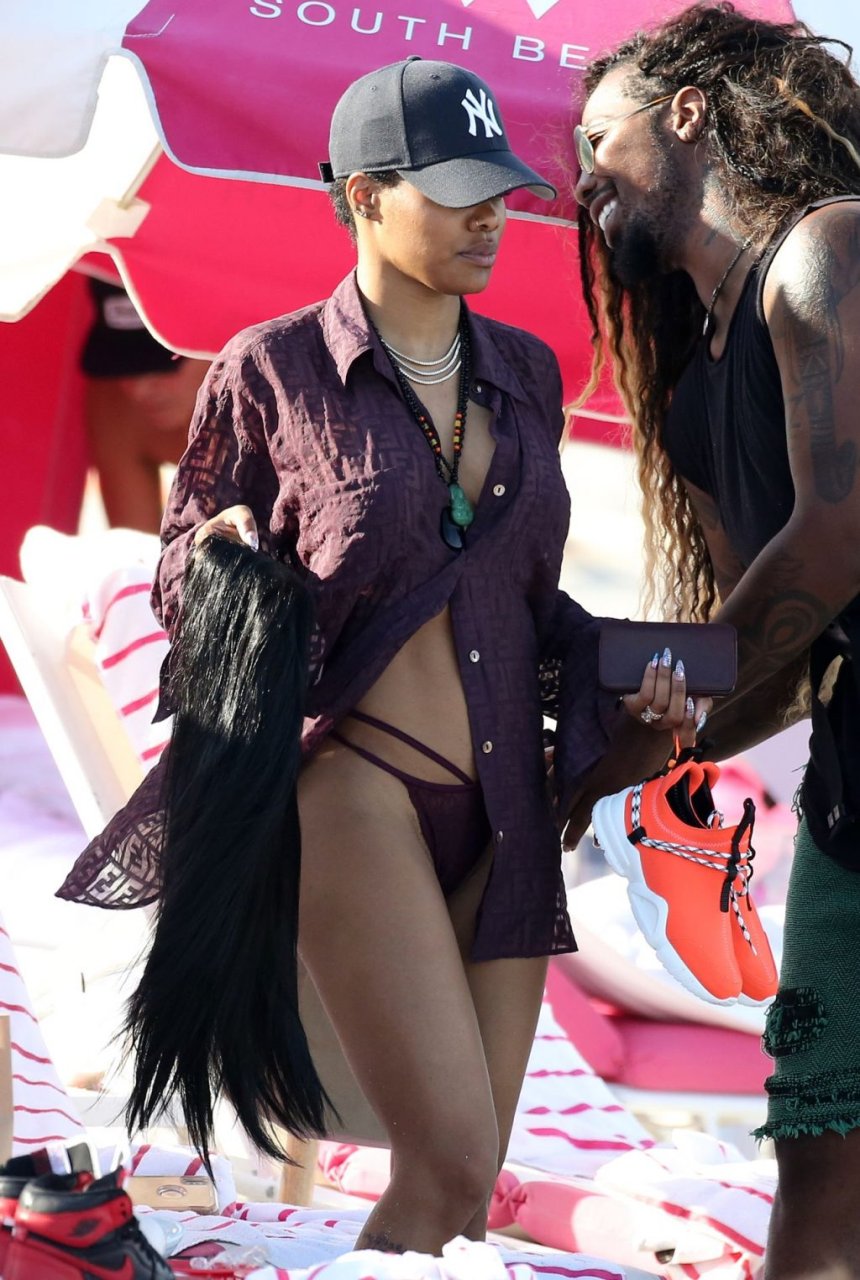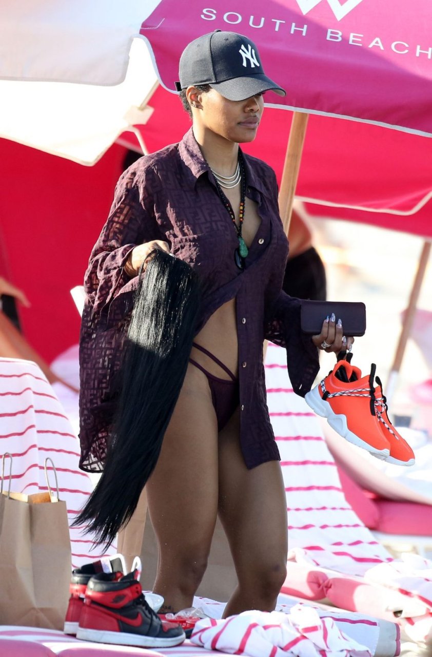 La chanteuse Teyana Taylor (28 ans) passe une journée en famille à la plage avec son mari, le joueur NBA des Houston Rockets Iman Shumpert, et leur fille à Miami Beach, Floride, le 02/07/2019.